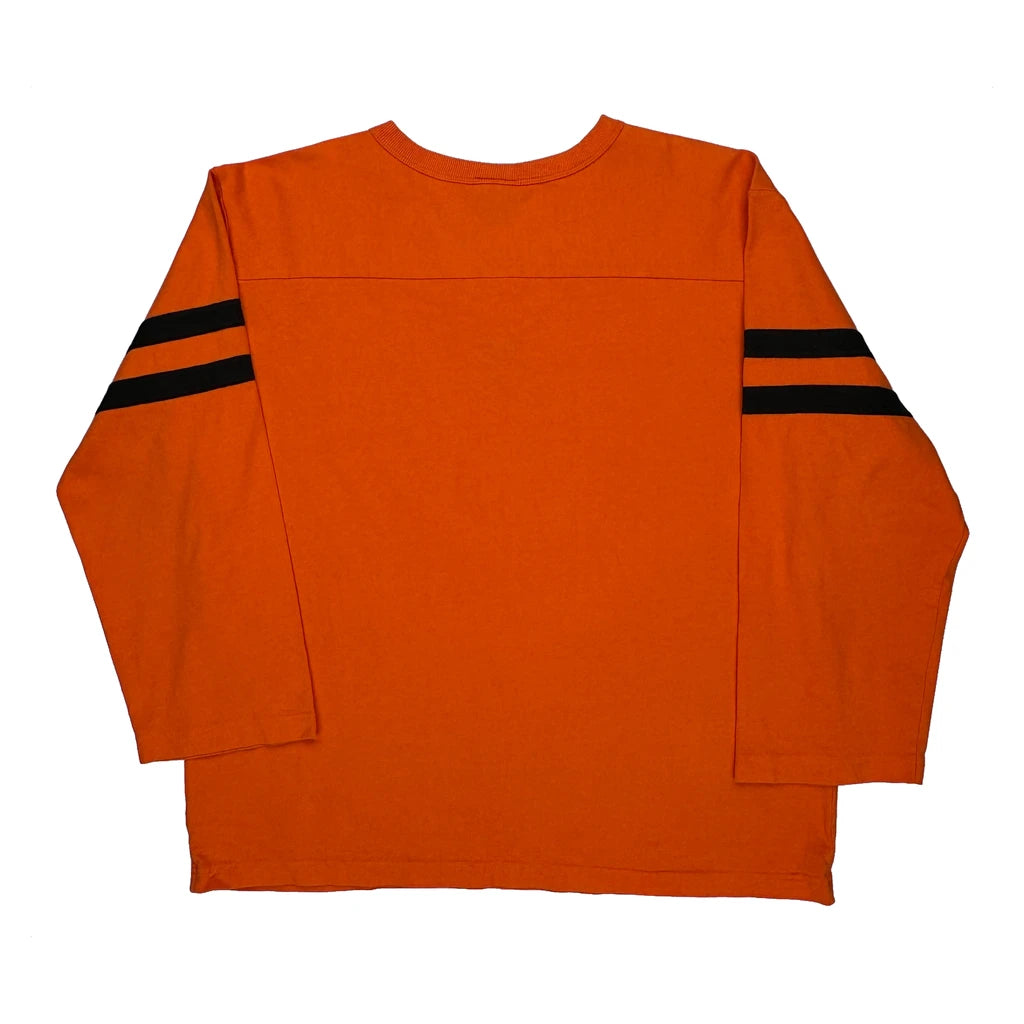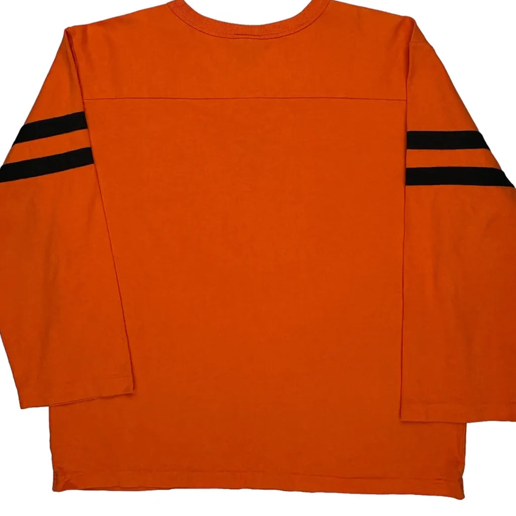 Orange Long Sleeve T-Shirt With Racing Number And Stripes On Sleeves