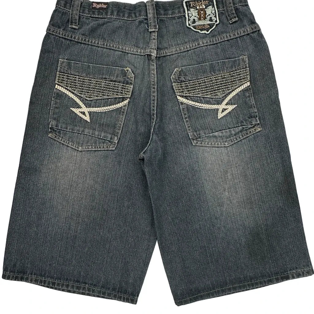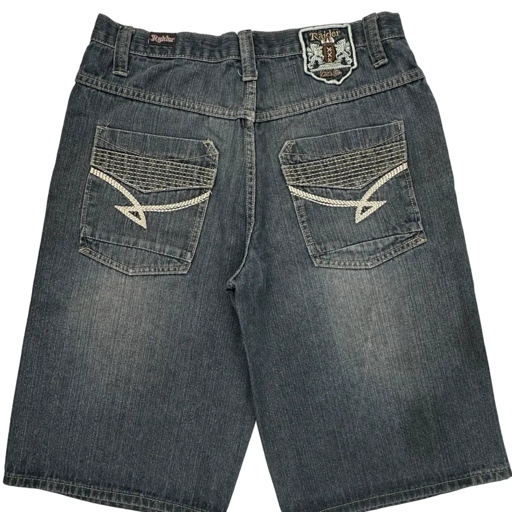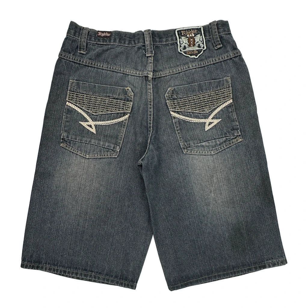 Raider Denim Shorts - 34W 12L Grey Cotton