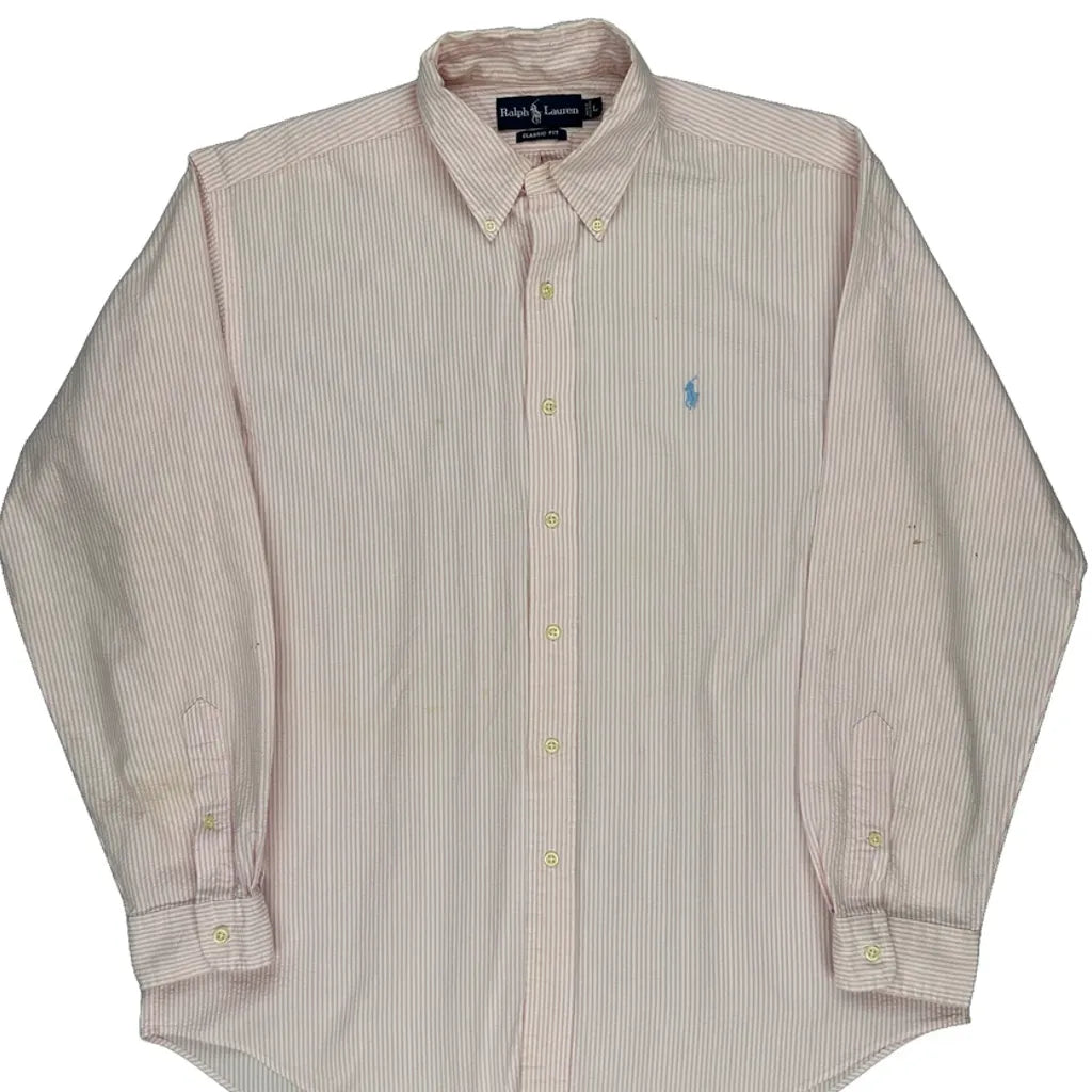 Ralph Lauren Striped Shirt - Large Pink Cotton