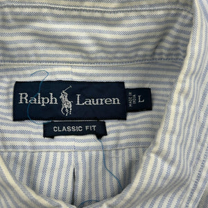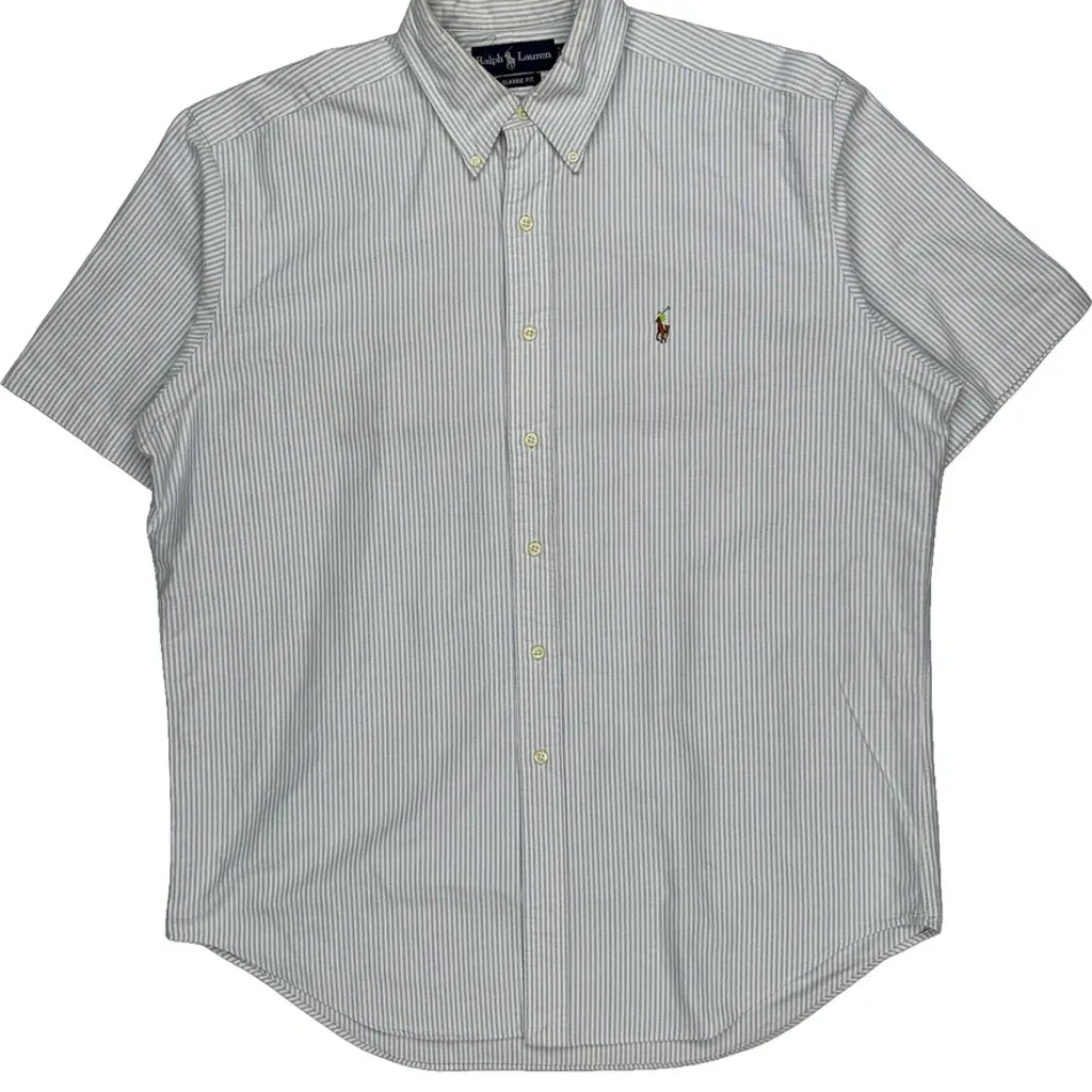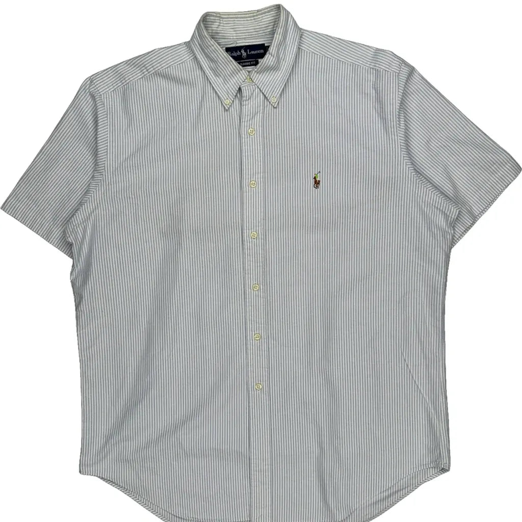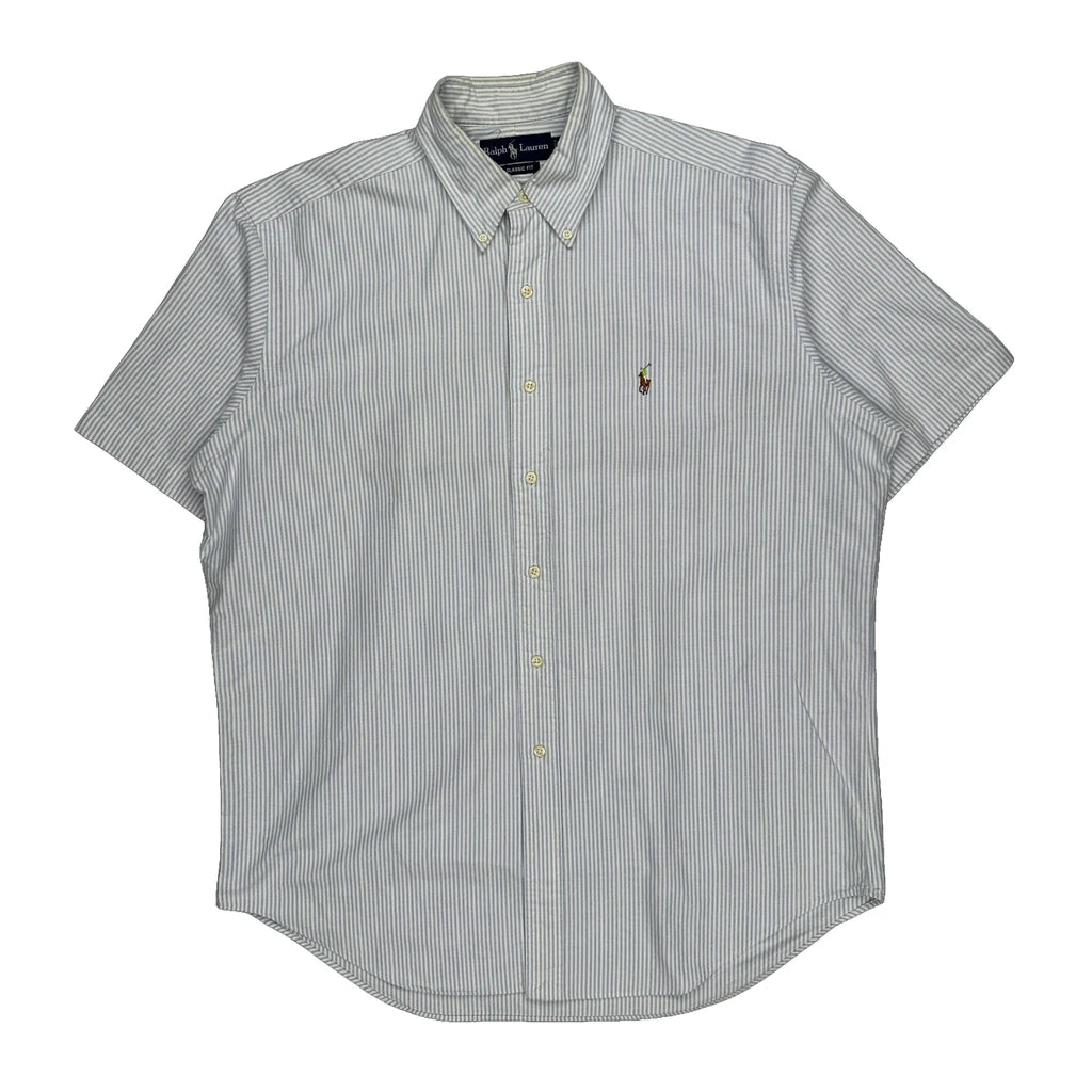 Ralph Lauren Striped Short Sleeve Shirt - Large Blue Cotton