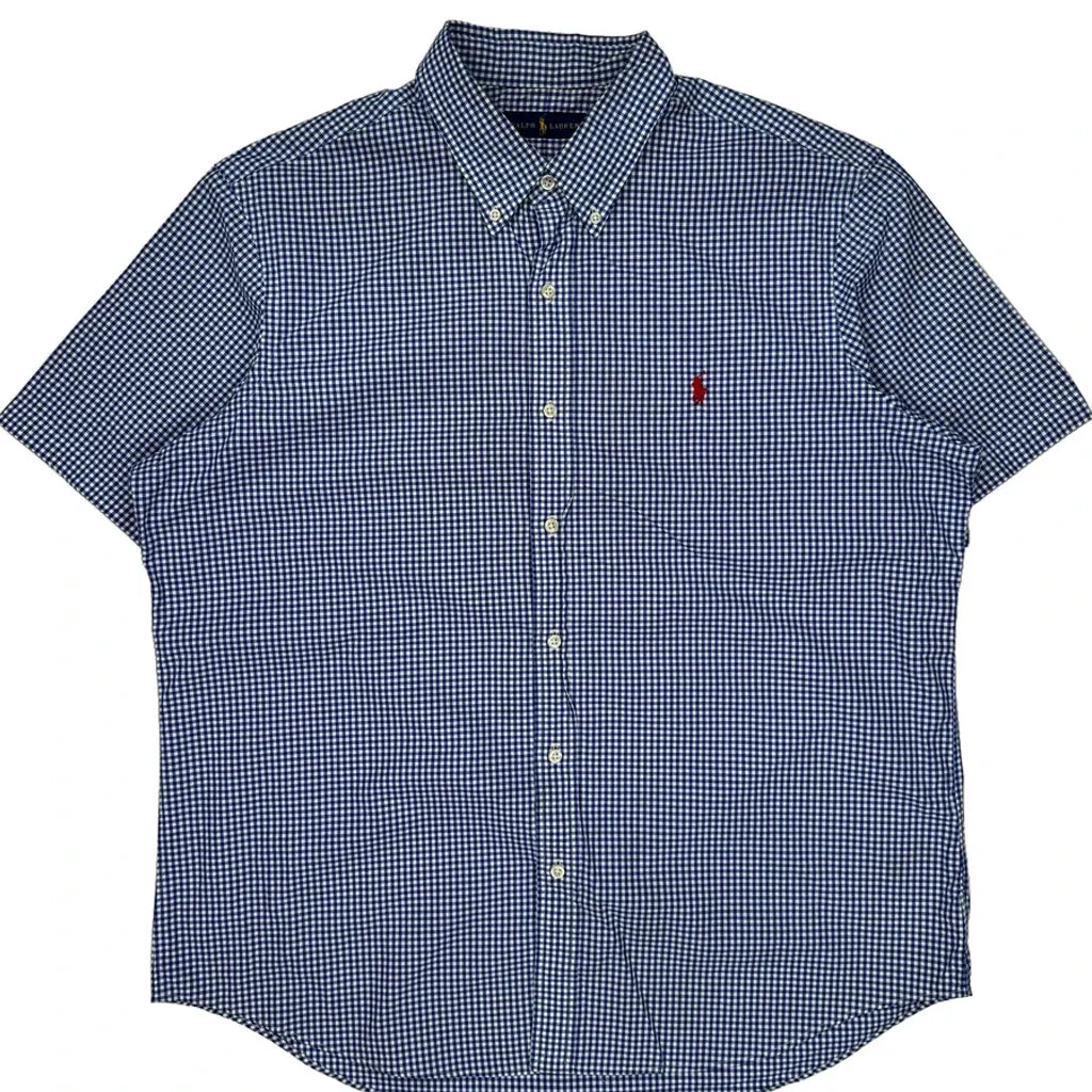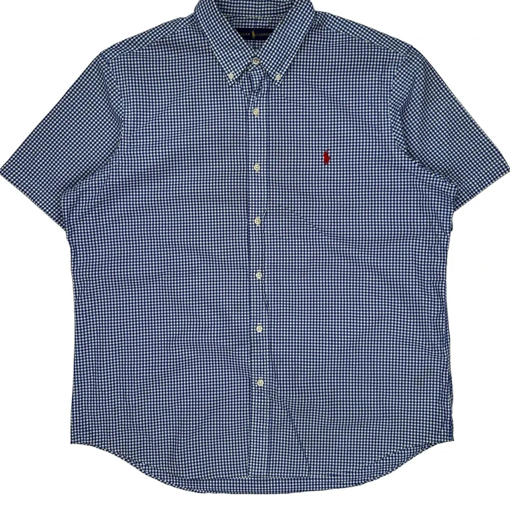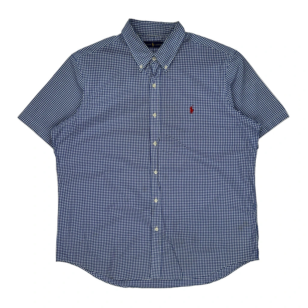 Ralph Lauren Checked Short Sleeve Shirt - XL Blue Cotton