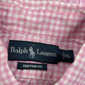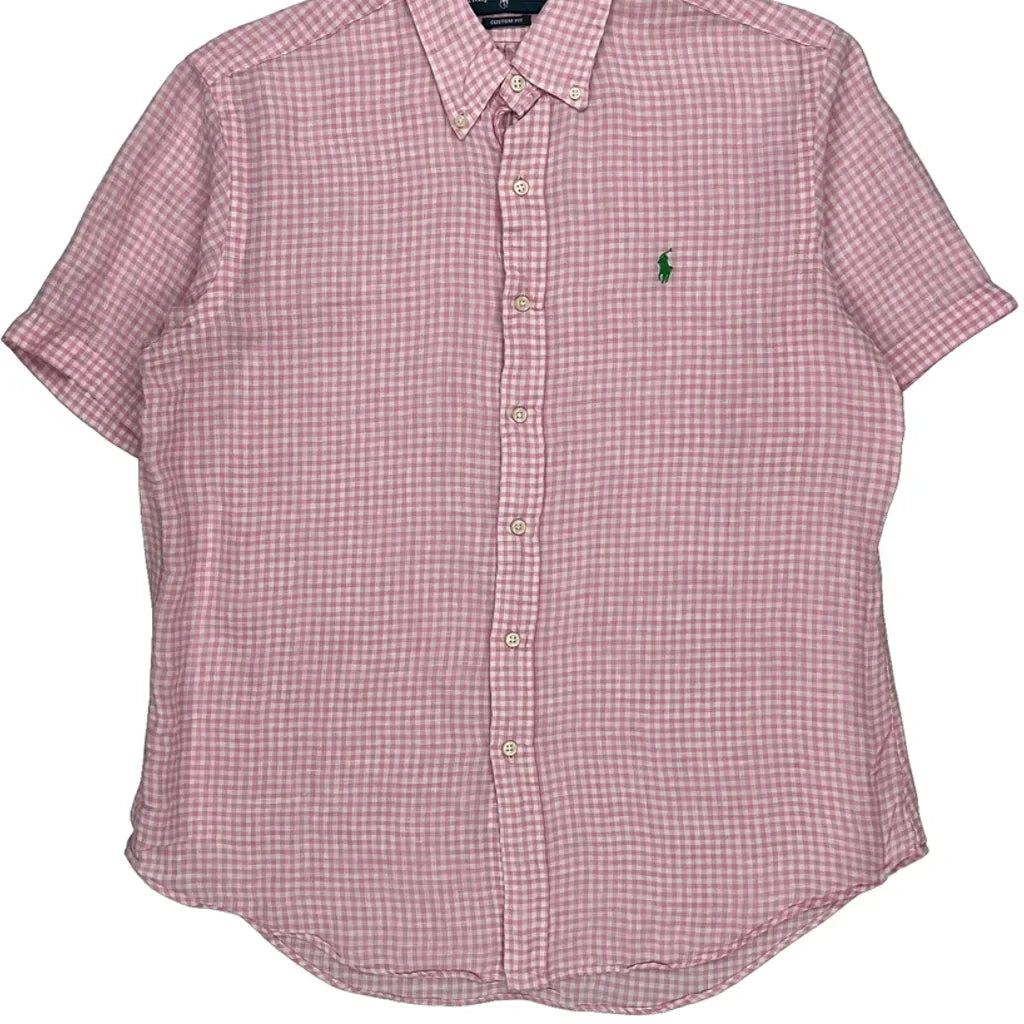 Ralph Lauren Custom Fit Pink Checked Short Sleeve Shirt, Small Mark On Back