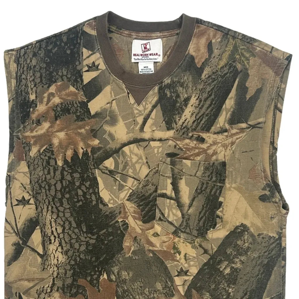 Real Work Wear Camo Vest - Medium Khaki Cotton