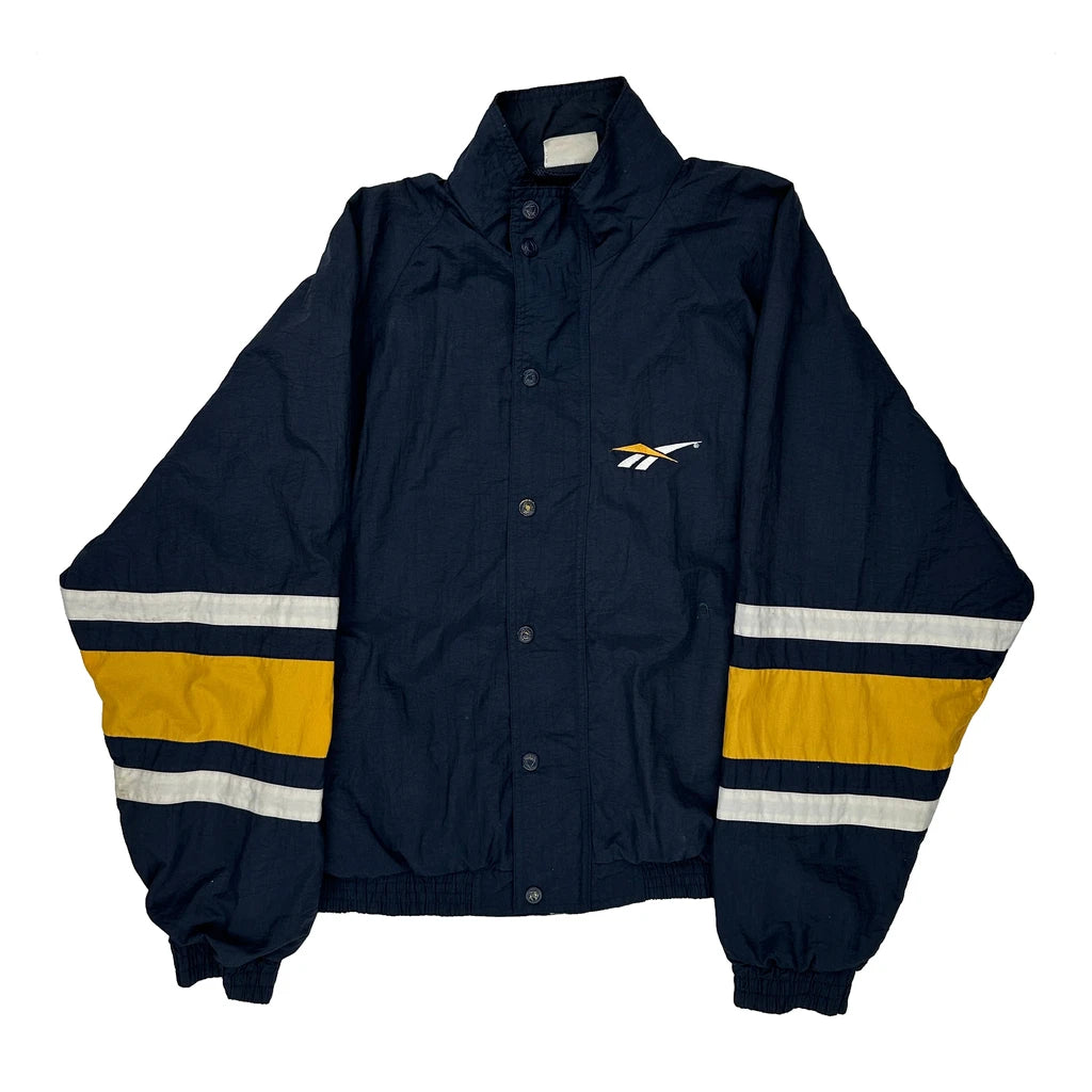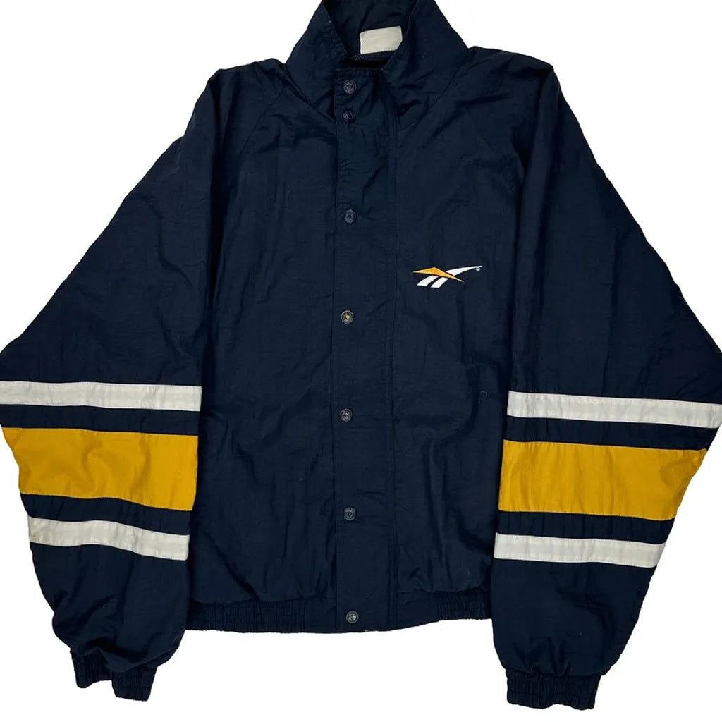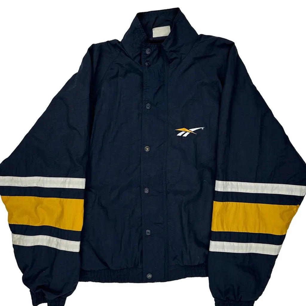 Reebok Windbreaker With Varsity Stripes, No Visible Marks Or Faults.