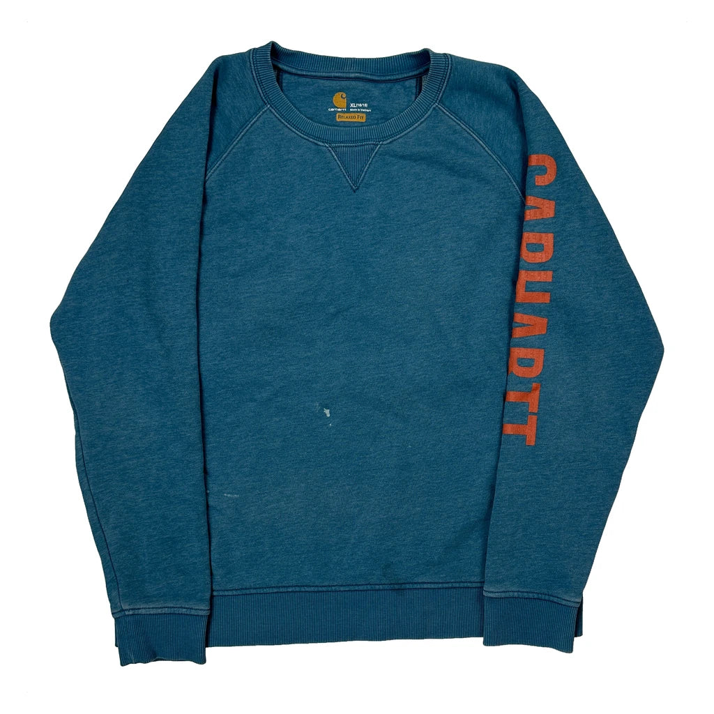 Relaxed Fit Carhartt Spellout Sweatshirt - XL Blue Cotton