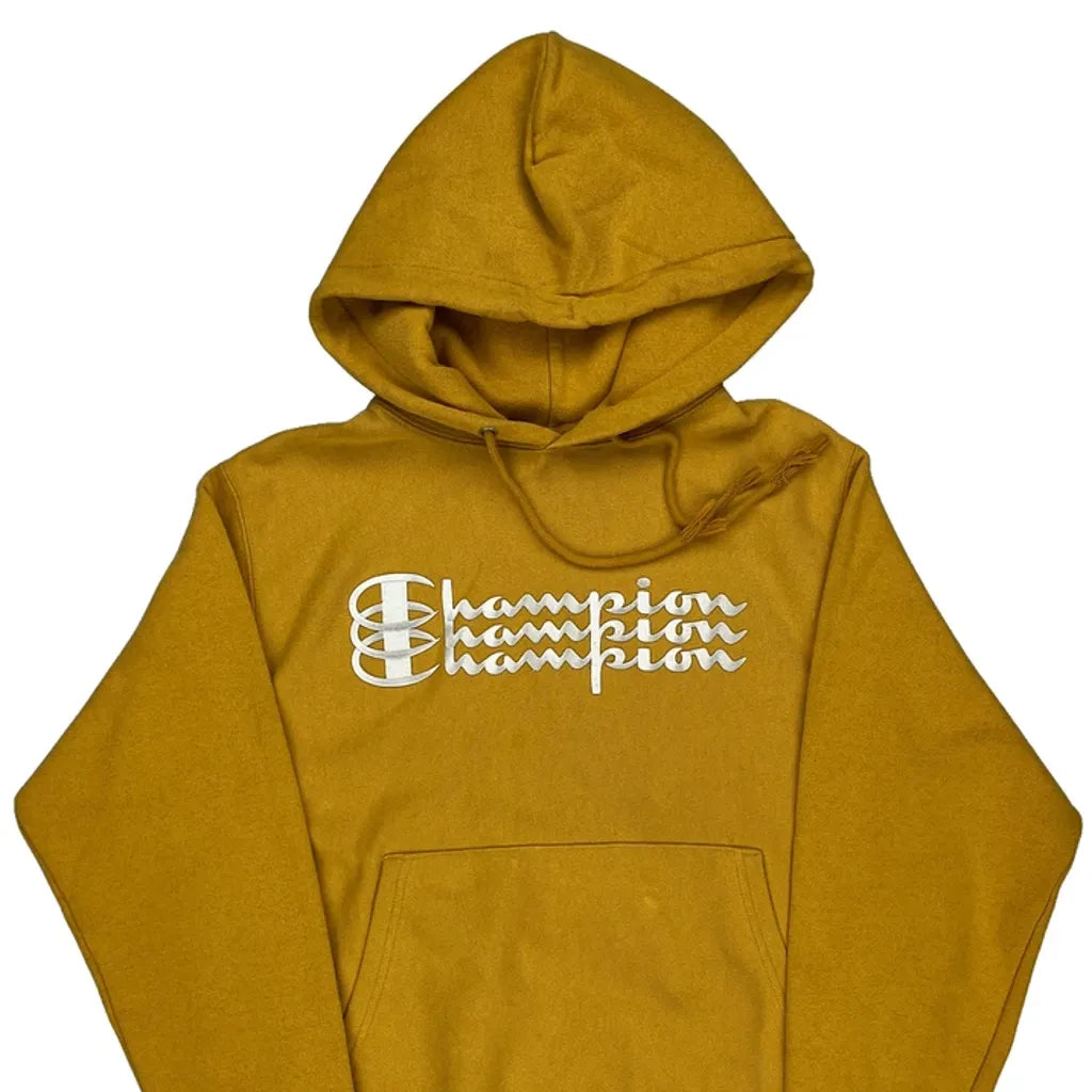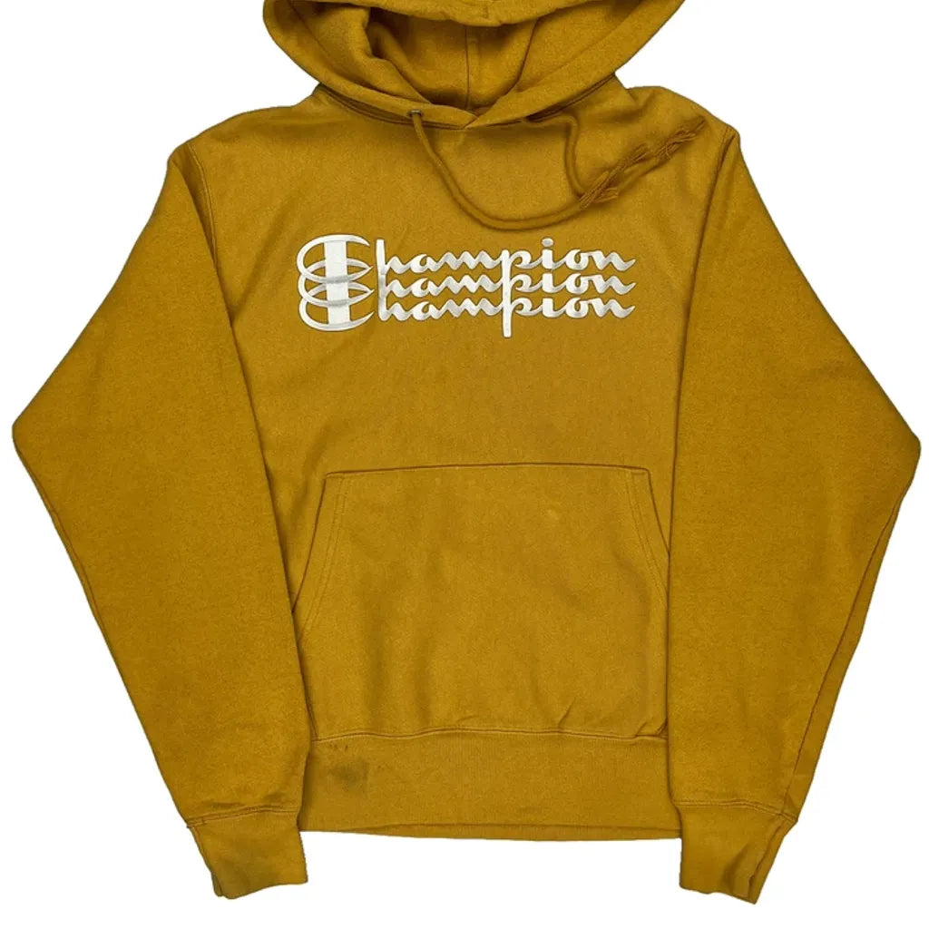 Reverse Weave Champion Spellout Hoodie - Small Yellow Cotton