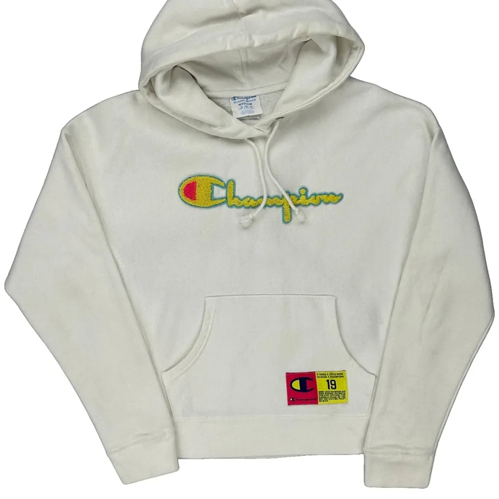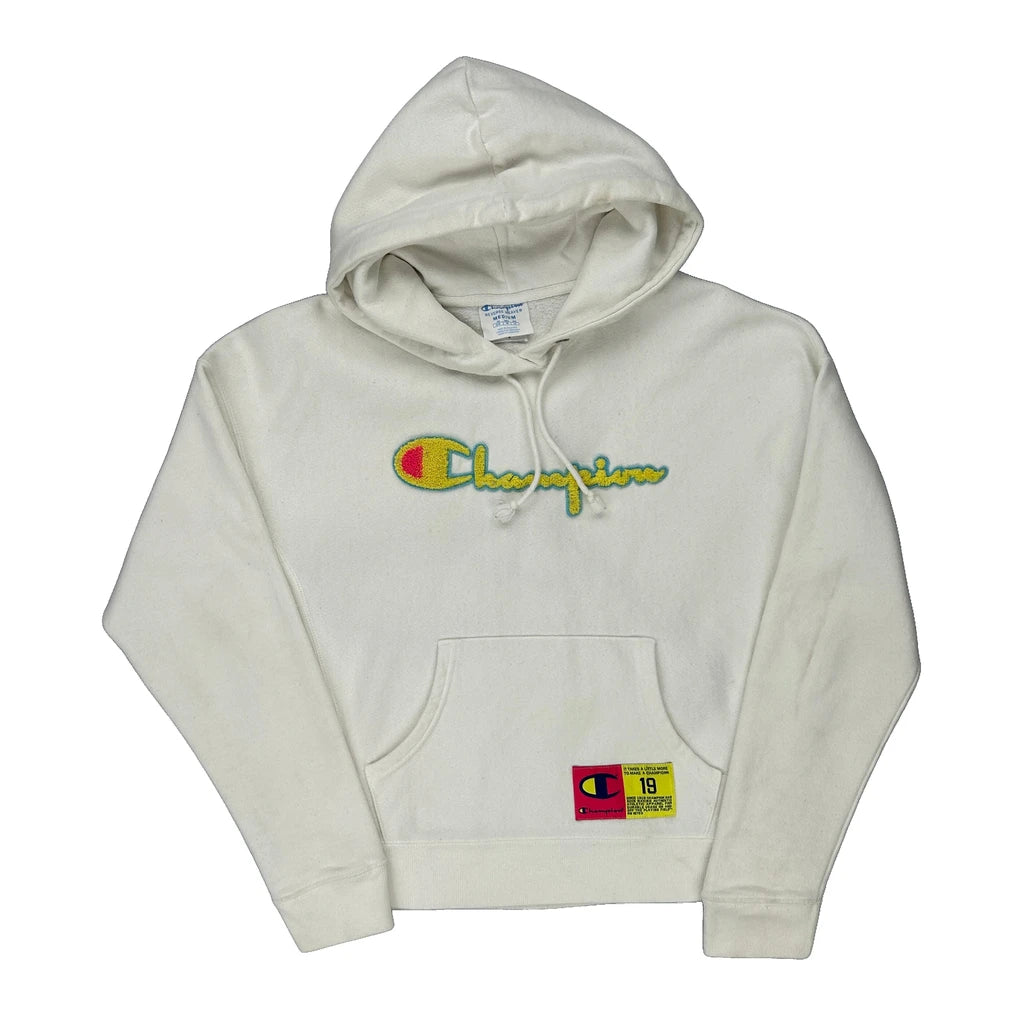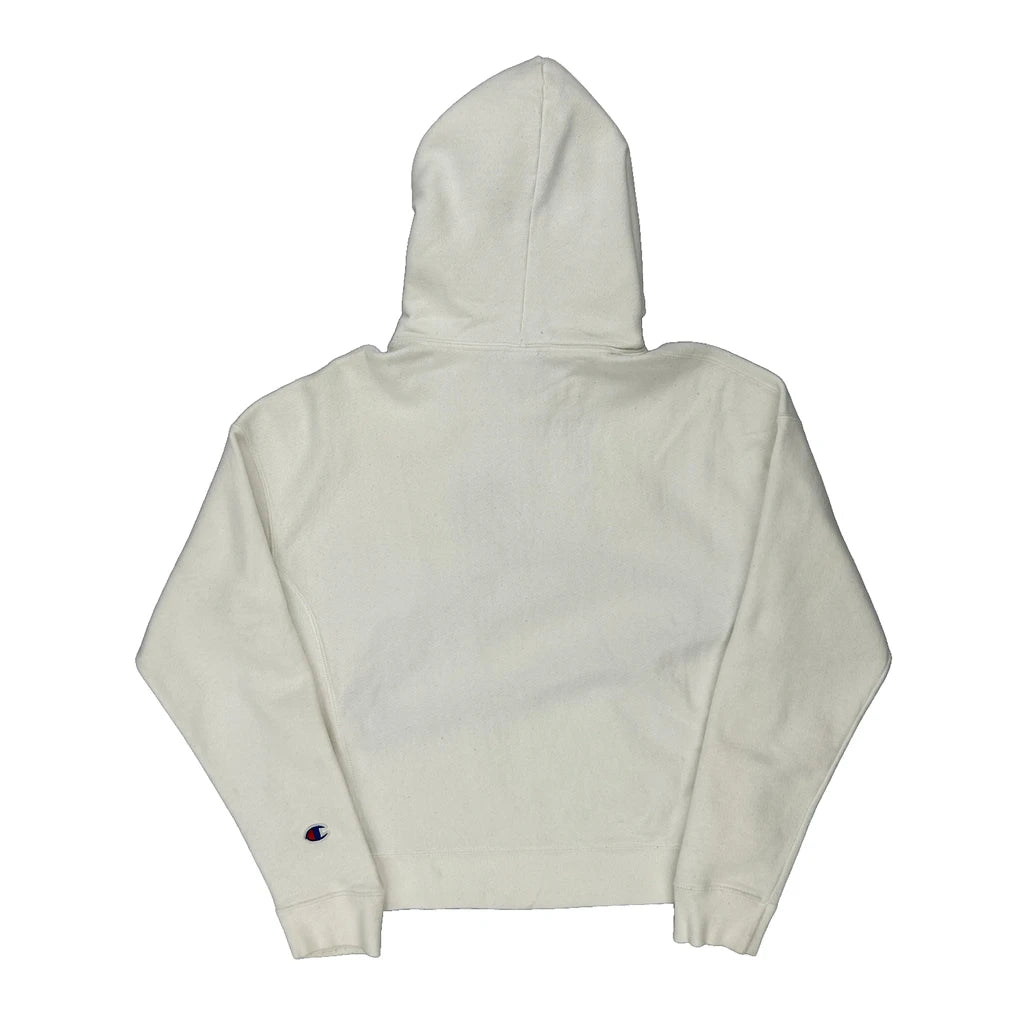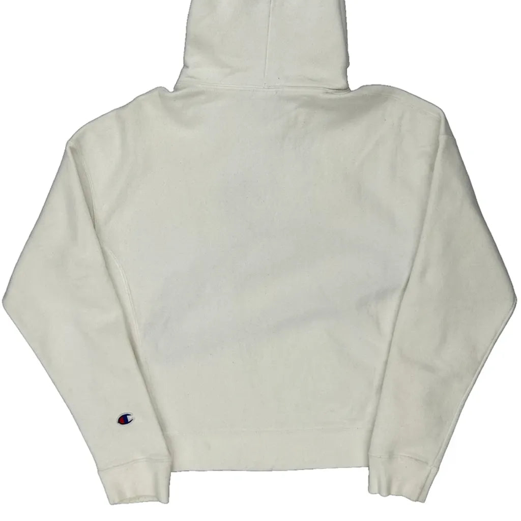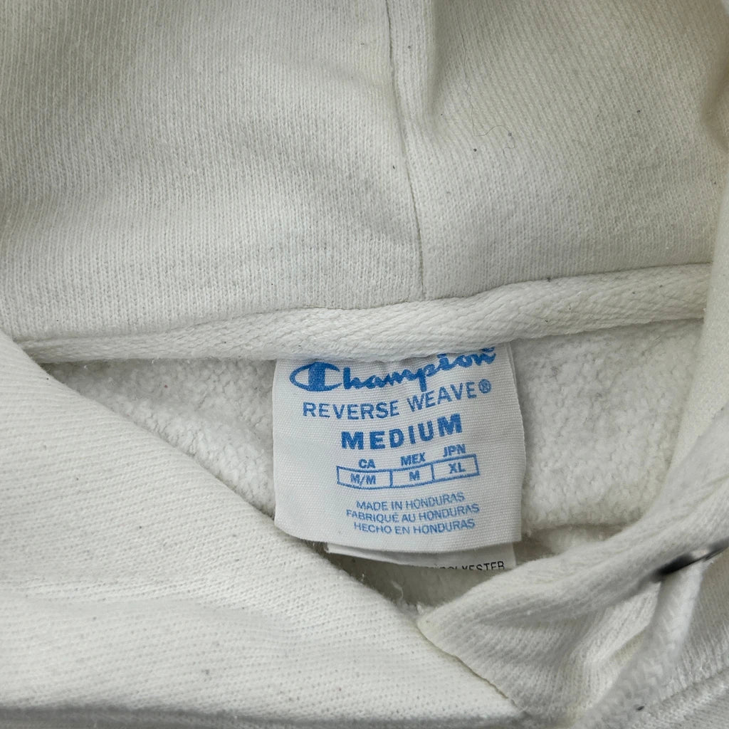 Reverse Weave Champion Spellout Hoodie - Medium White Cotton Blend