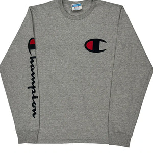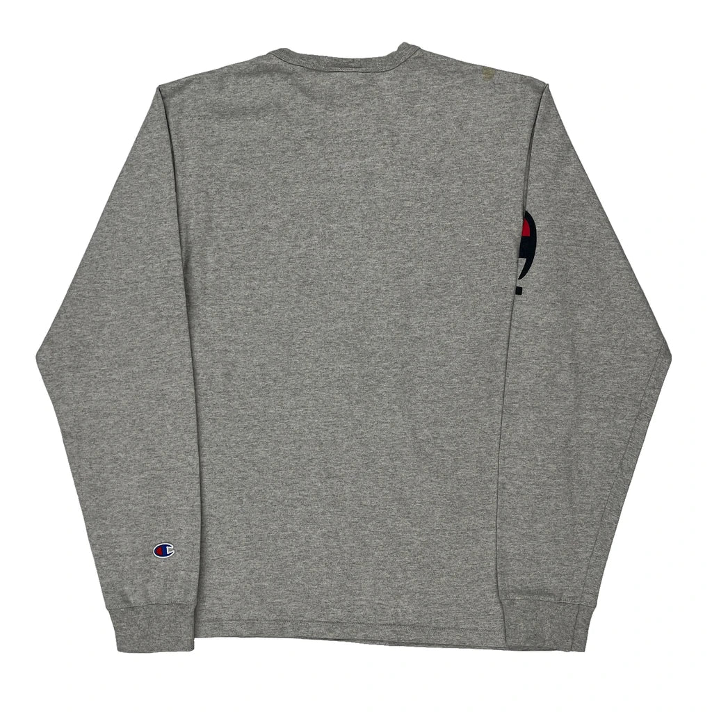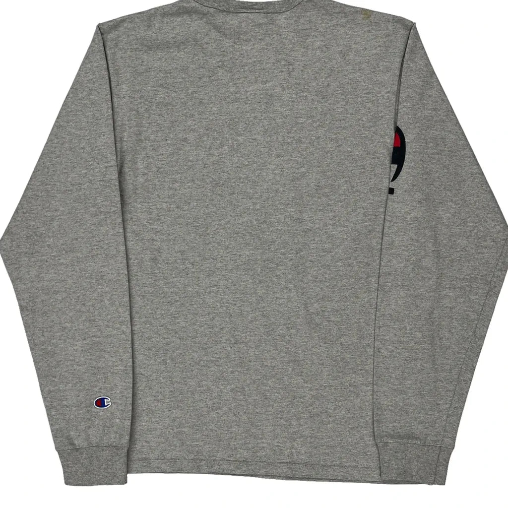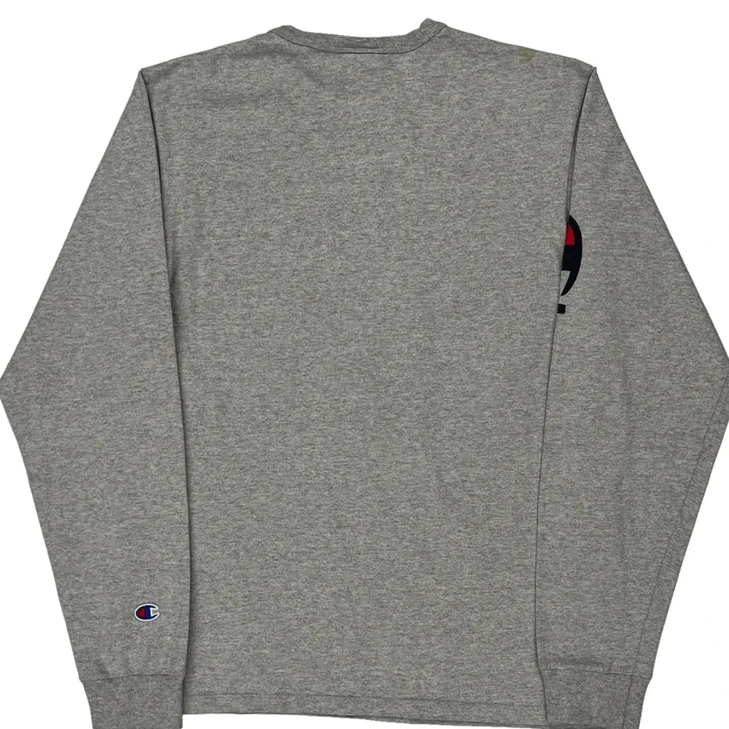Reverse Weave Champion Spellout Long Sleeve T-Shirt - Medium Grey Cotton