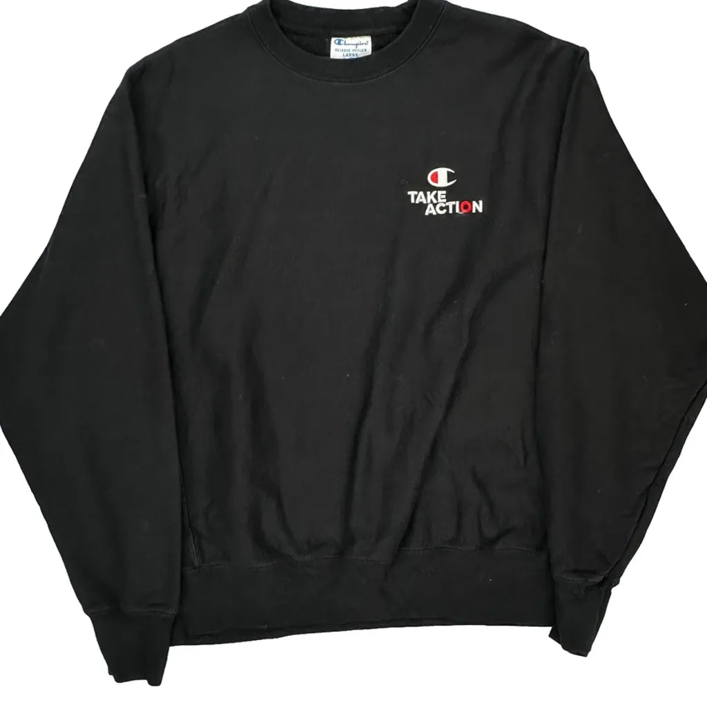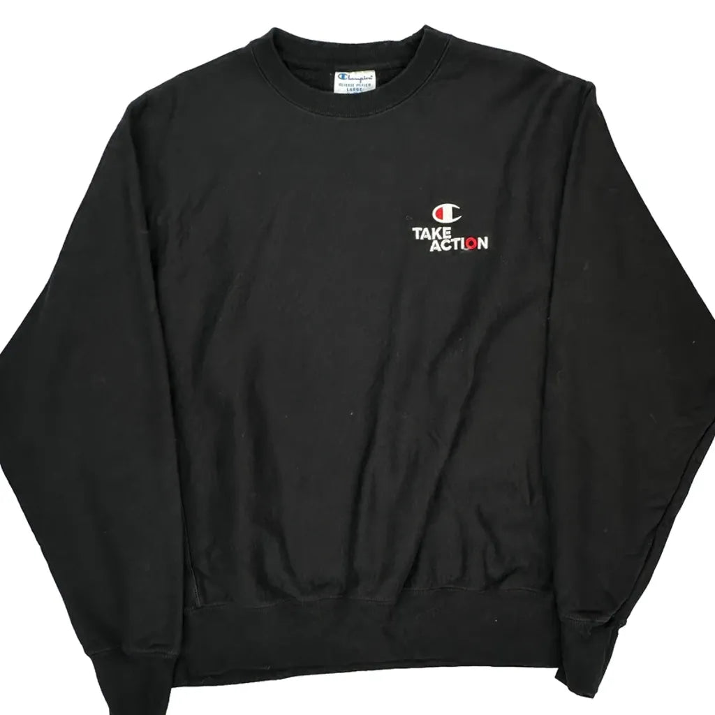 Champion Reverse Weave Black Long Sleeve T-Shirt With 'Take Action' Graphic.