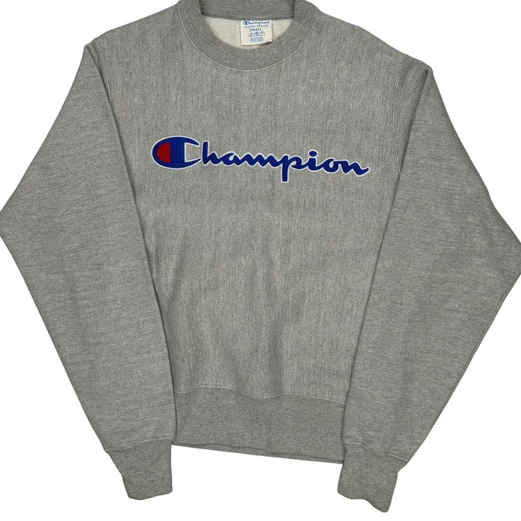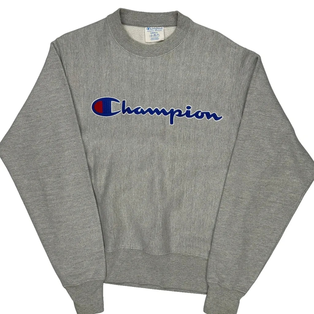 Reverse Weave Champion Spellout Sweatshirt - Small Grey Cotton