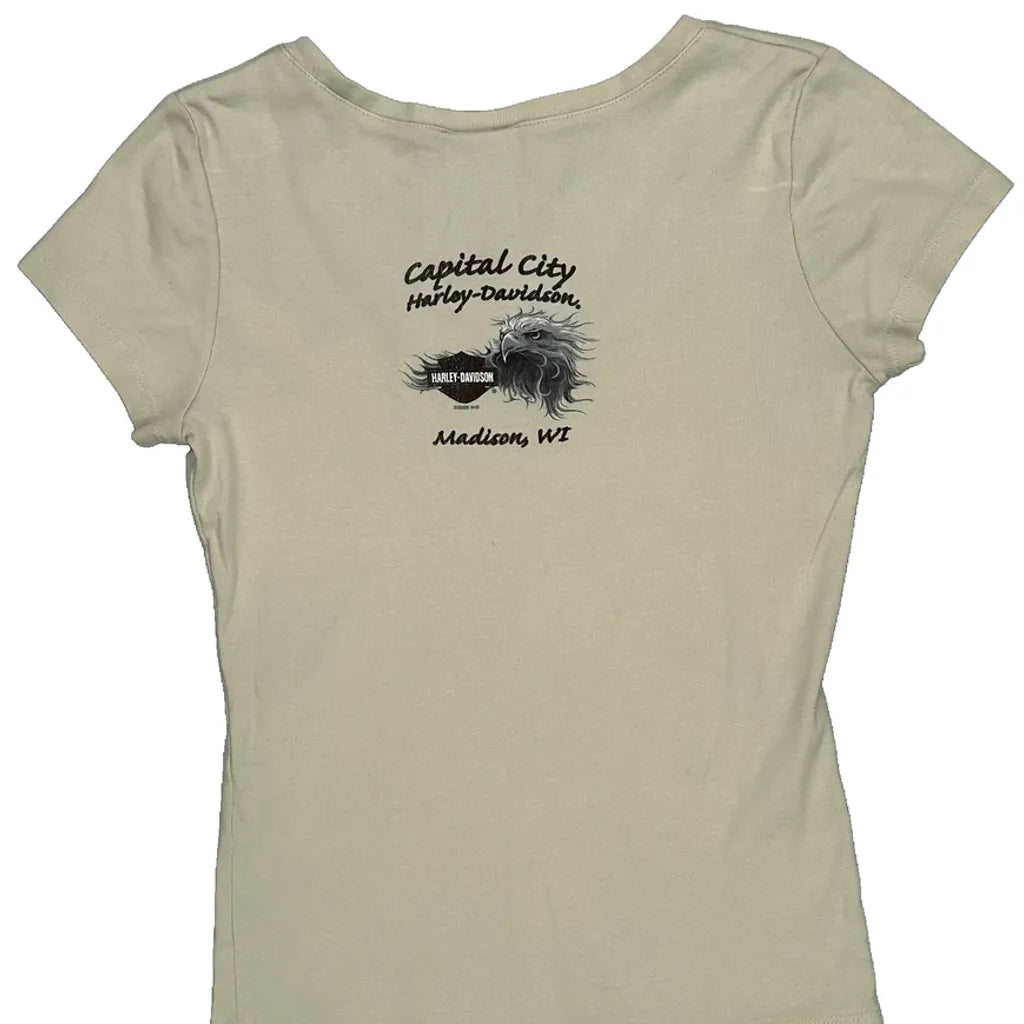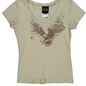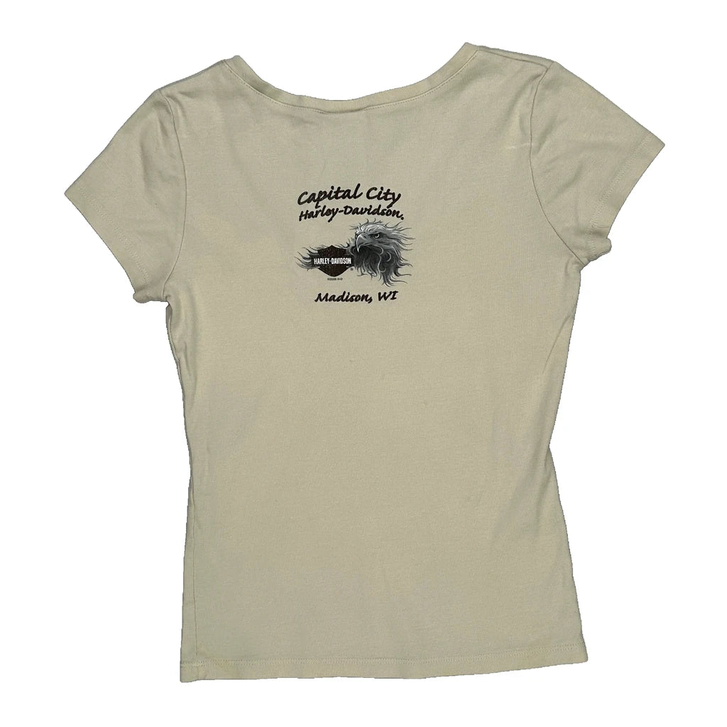 Ride Free Harley Davidson Graphic T-Shirt - Small Beige Cotton