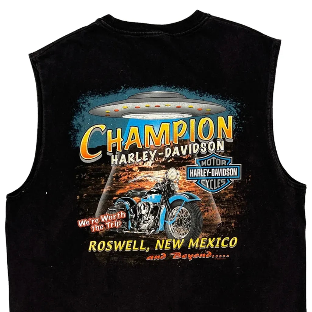 Roswell, New Mexico Harley Davidson Graphic Vest - Large Black Cotton