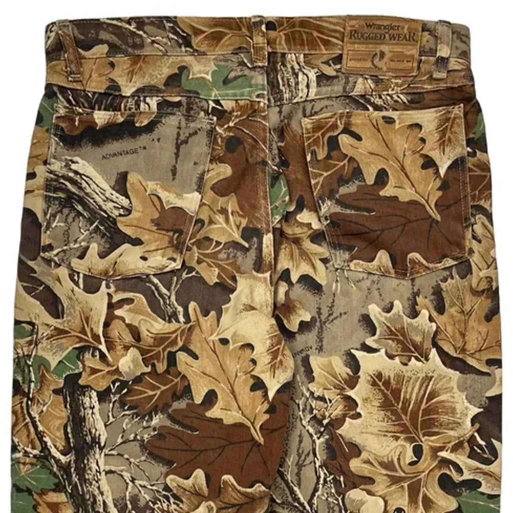 Rugged Wear Wrangler Camo Cargo Trousers - 34W 29L Green Cotton