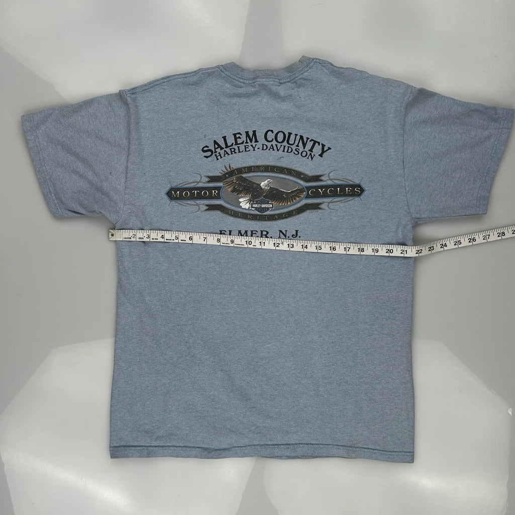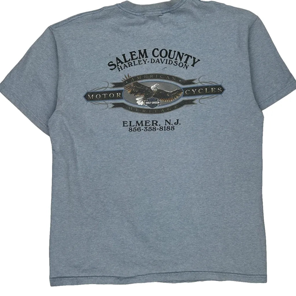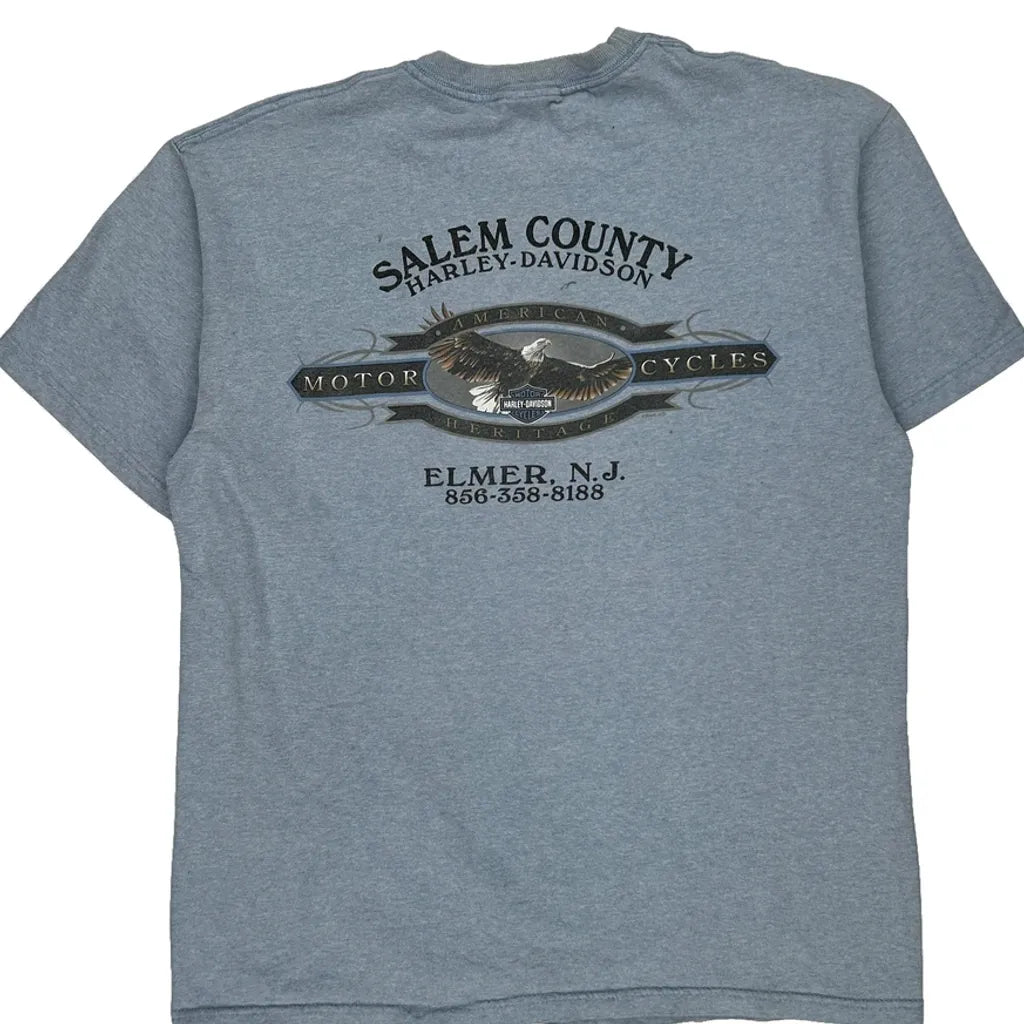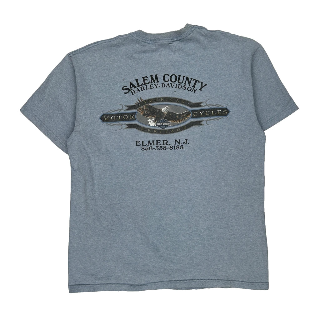 Salem County Harley Davidson Graphic T-Shirt - Large Blue Cotton