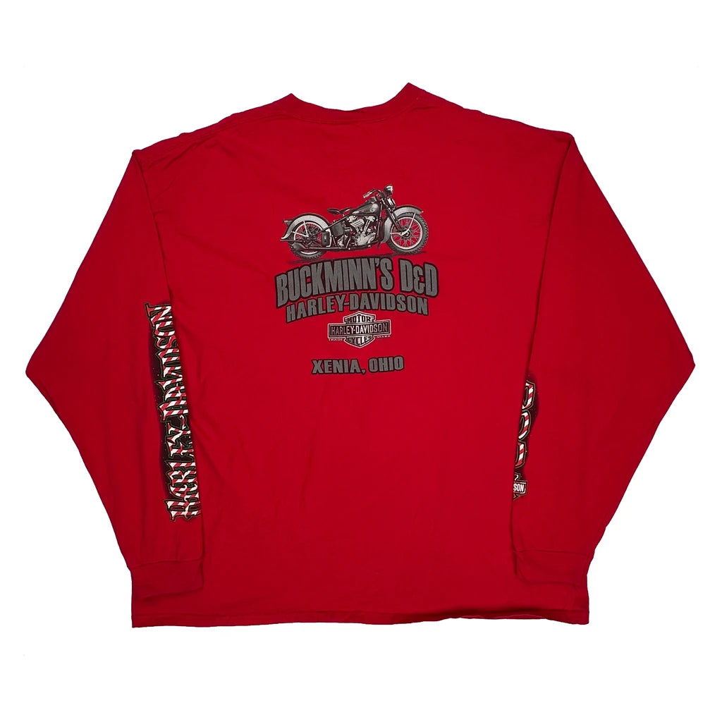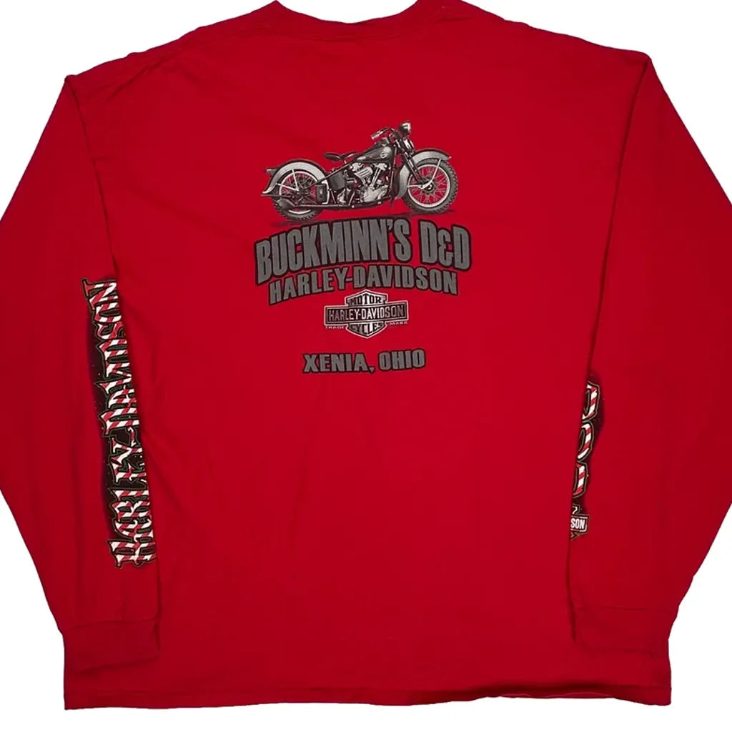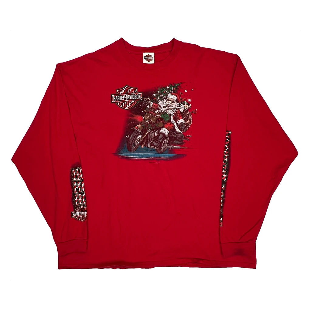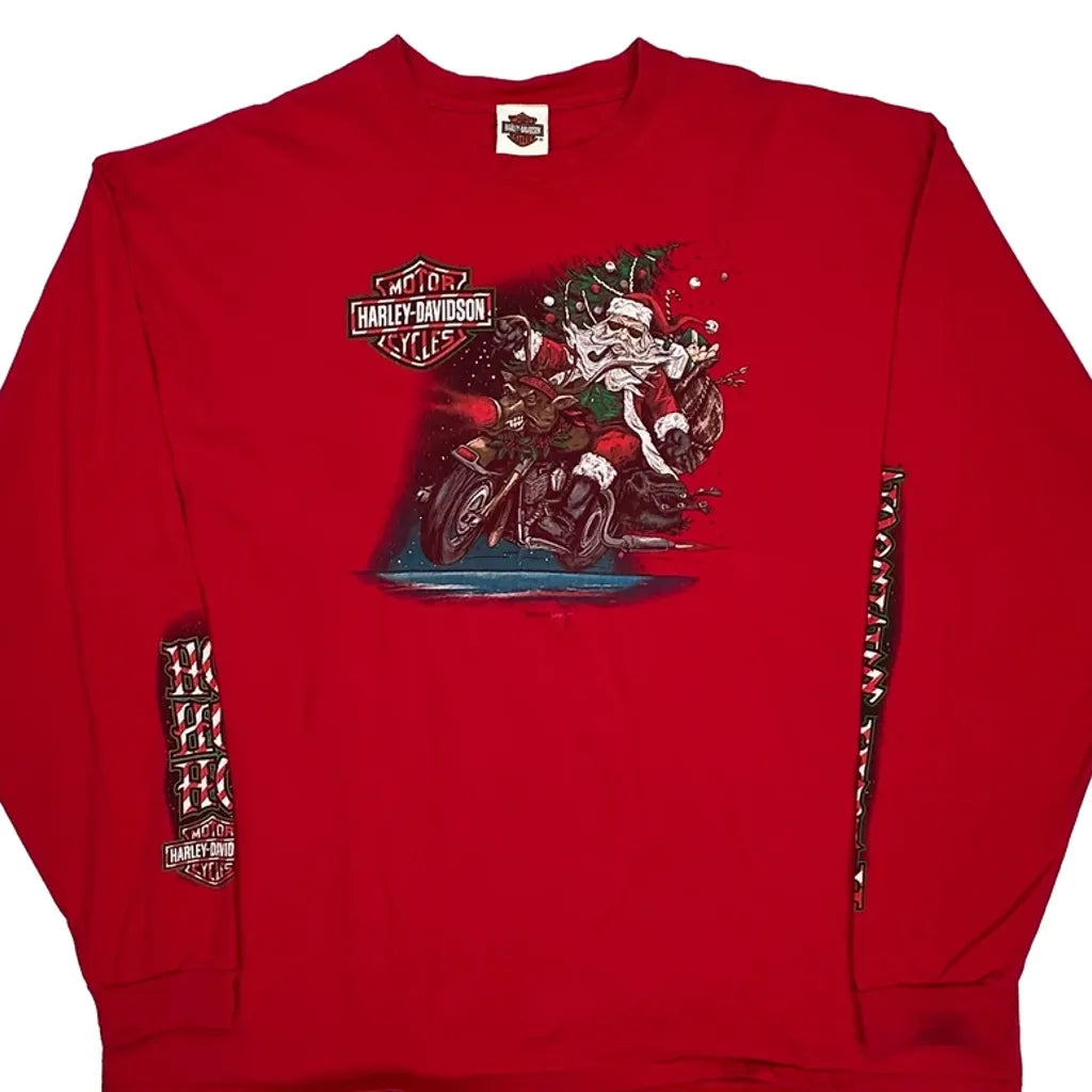 Santa On Motorcycle Harley Davidson Christmas Long Sleeve T-Shirt - 3XL Red Cotton