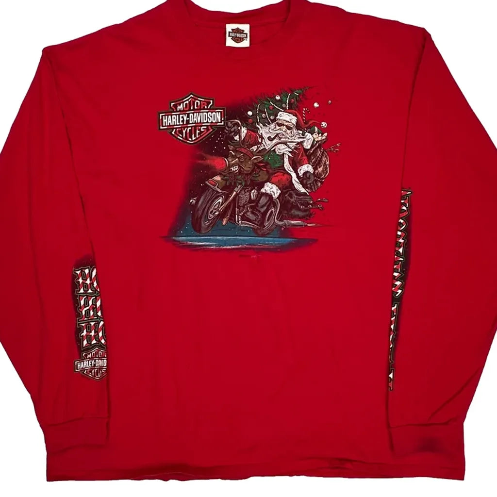 Santa On Motorcycle Harley Davidson Long Sleeve T-Shirt, fits Xxx-Large.