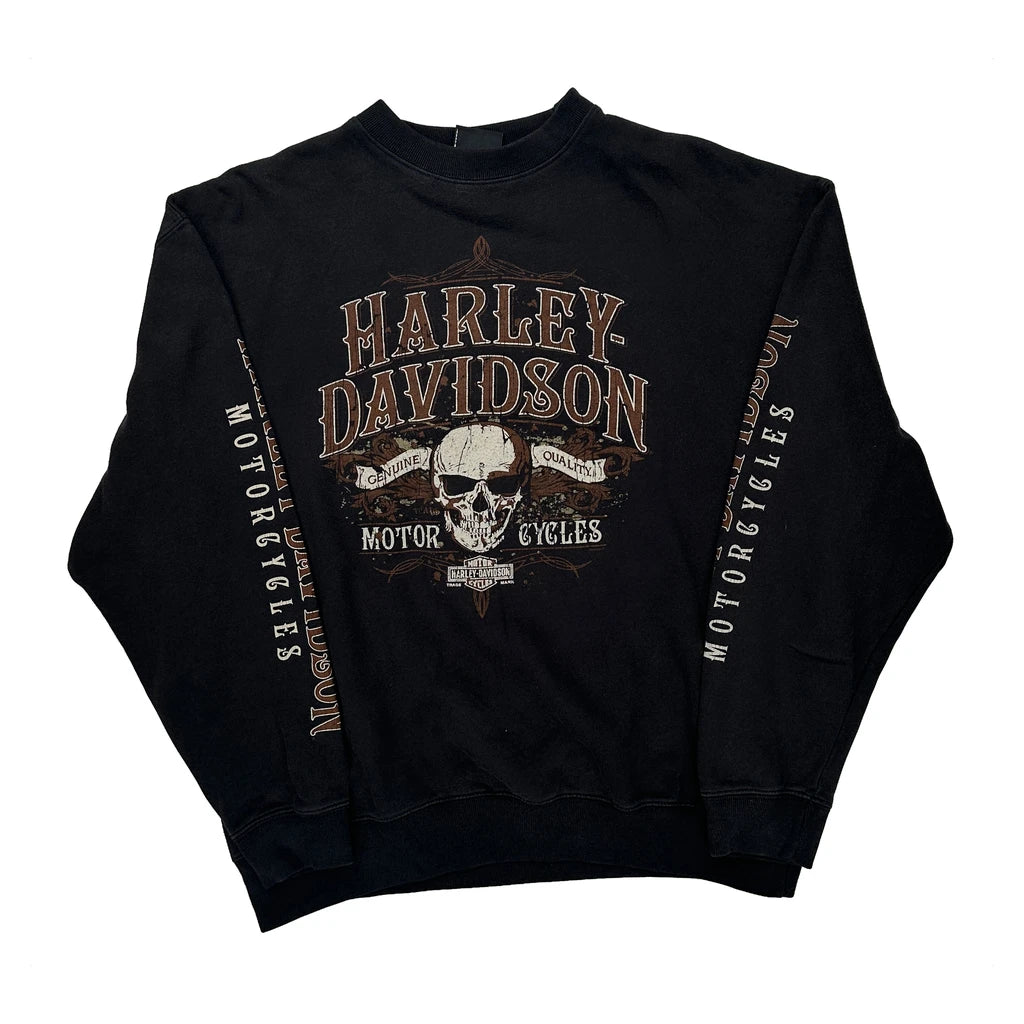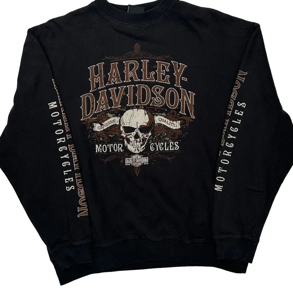 Harley Davidson Long Sleeve T-Shirt With Skull Graphic And Text Print
