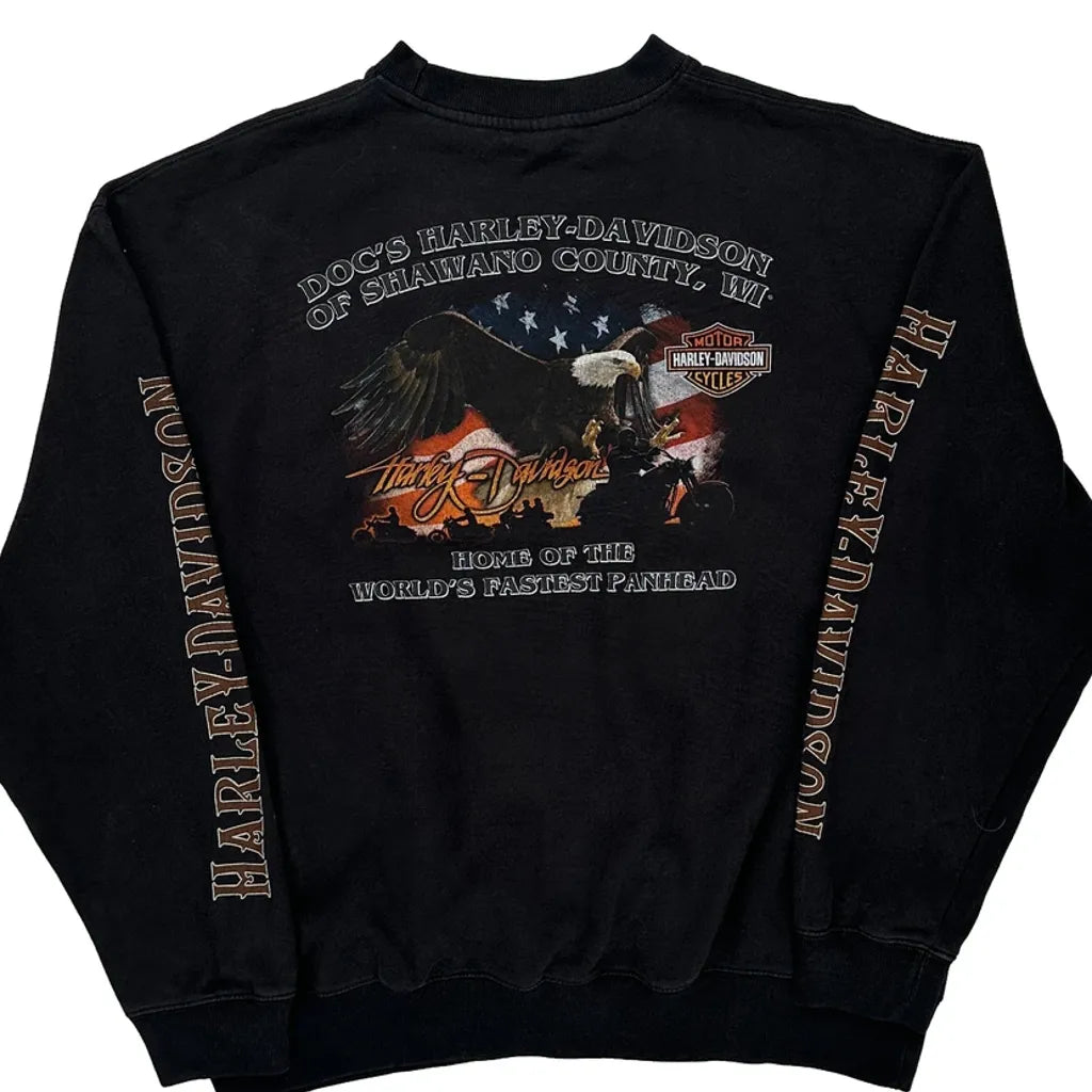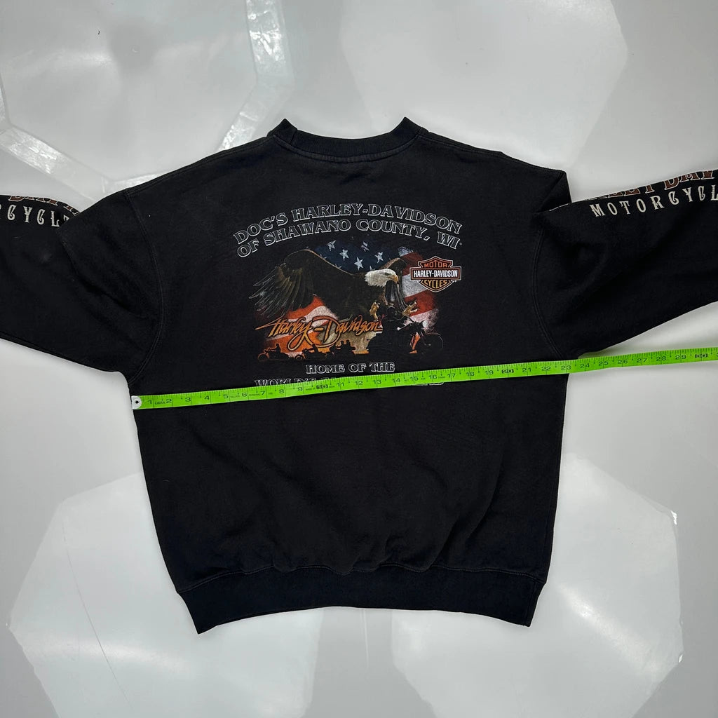 Shawano County, Wi Harley Davidson Graphic Long Sleeve T-Shirt - XL Black Cotton