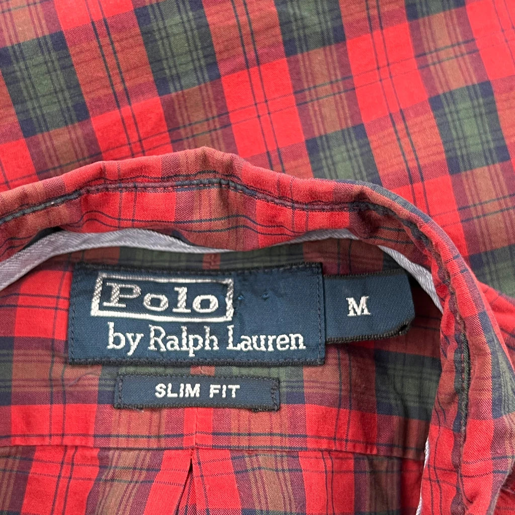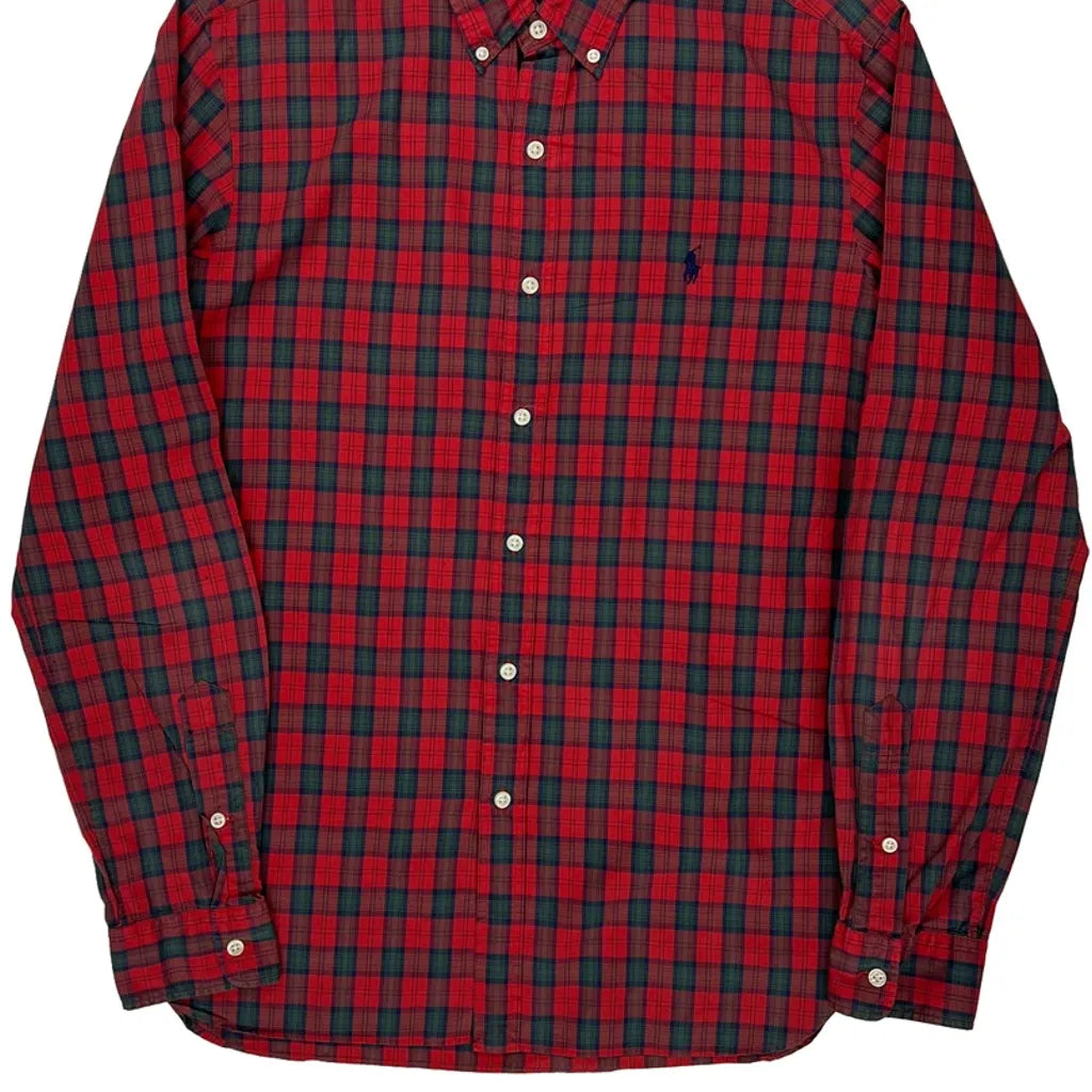 Slim Fit Polo By Ralph Lauren Checked Shirt - Medium Green Cotton