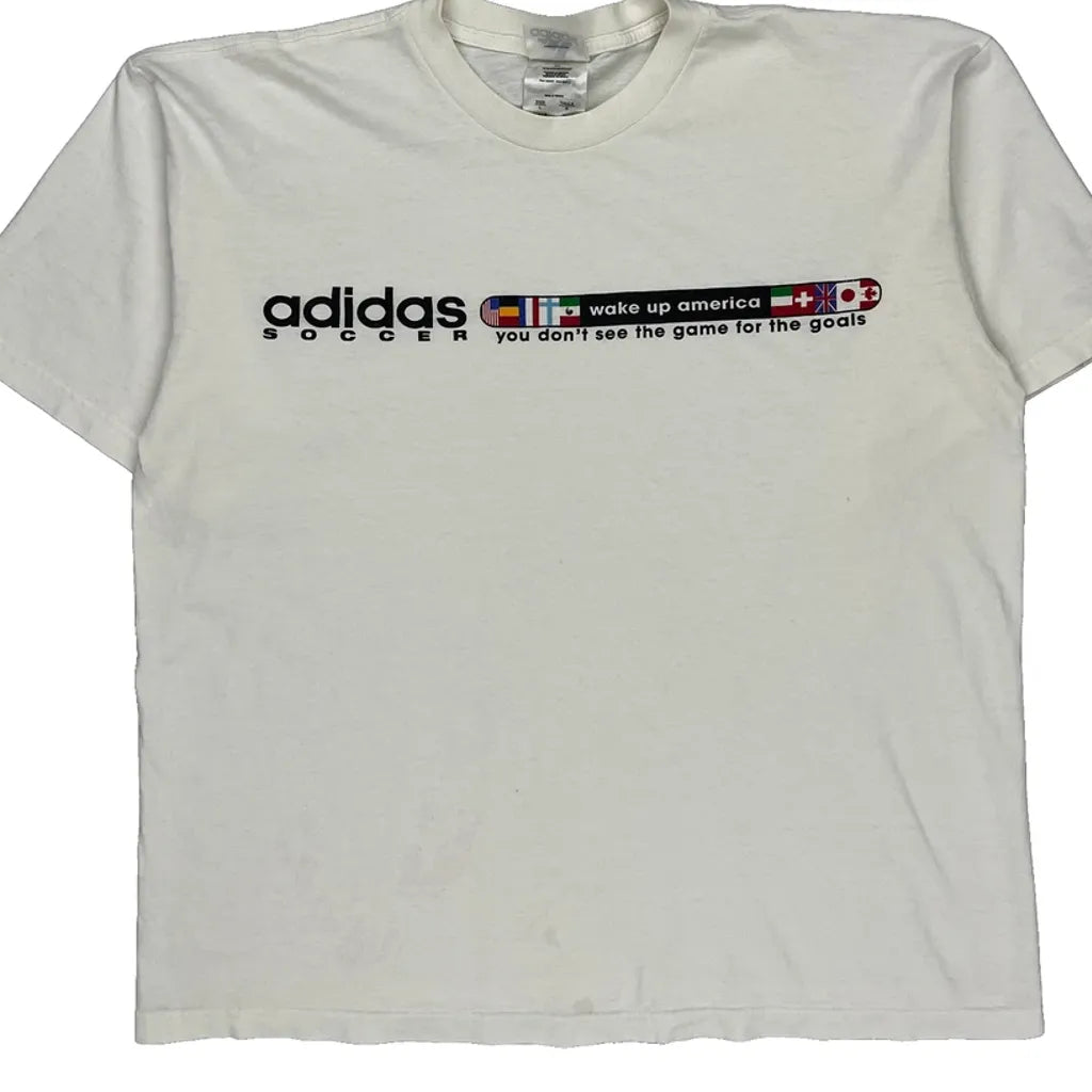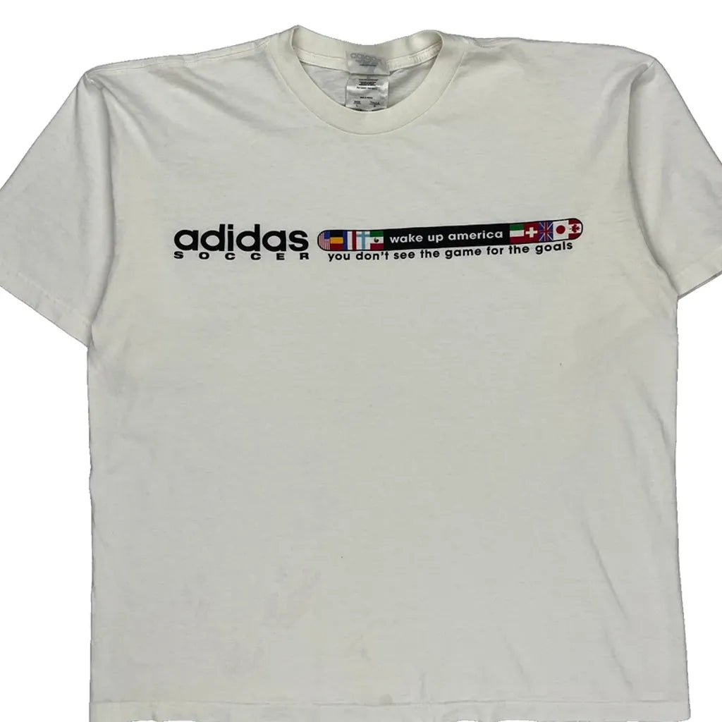 Soccer Adidas Graphic T-Shirt - Large White Cotton