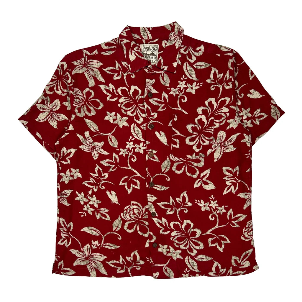 Steve & Barry Floral Hawaiian Shirt - Large Red Viscose