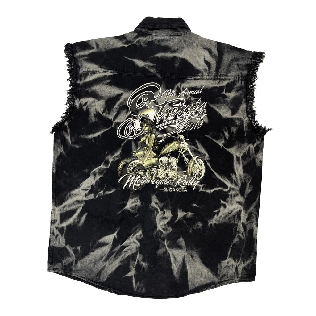 Sturgis Motorcycle Rally Biker Gilet Graphic Denim Gilet - XL Black Cotton