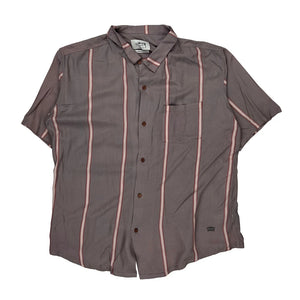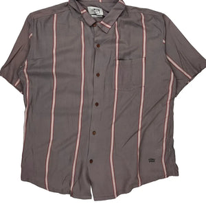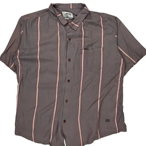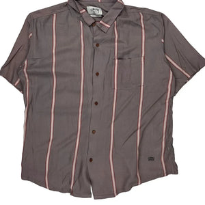Stussy Striped Short Sleeve Shirt - Medium Pink Viscose