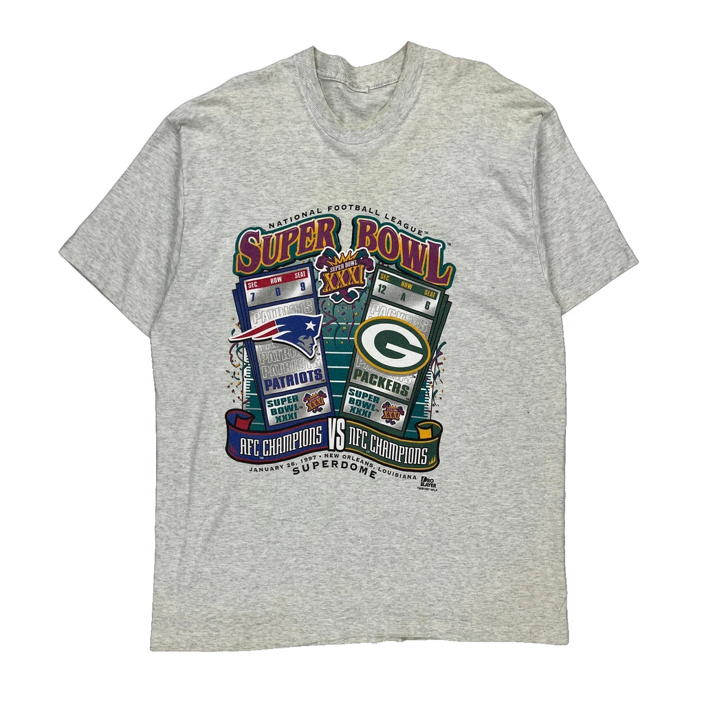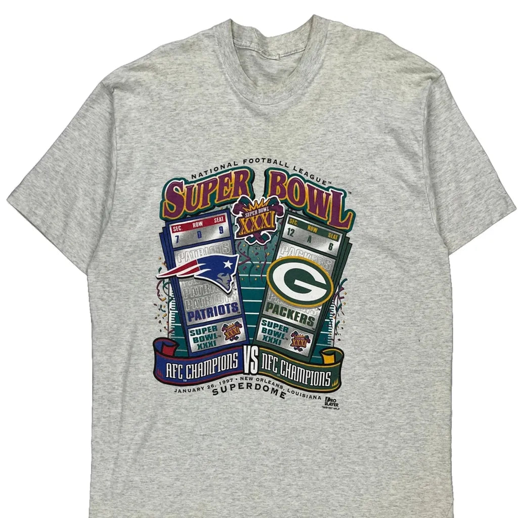 Green Bay Packers vs New England Patriots Super Bowl 1997 Nfl Single Stitch T-Shirt - 2XL Grey Cotton