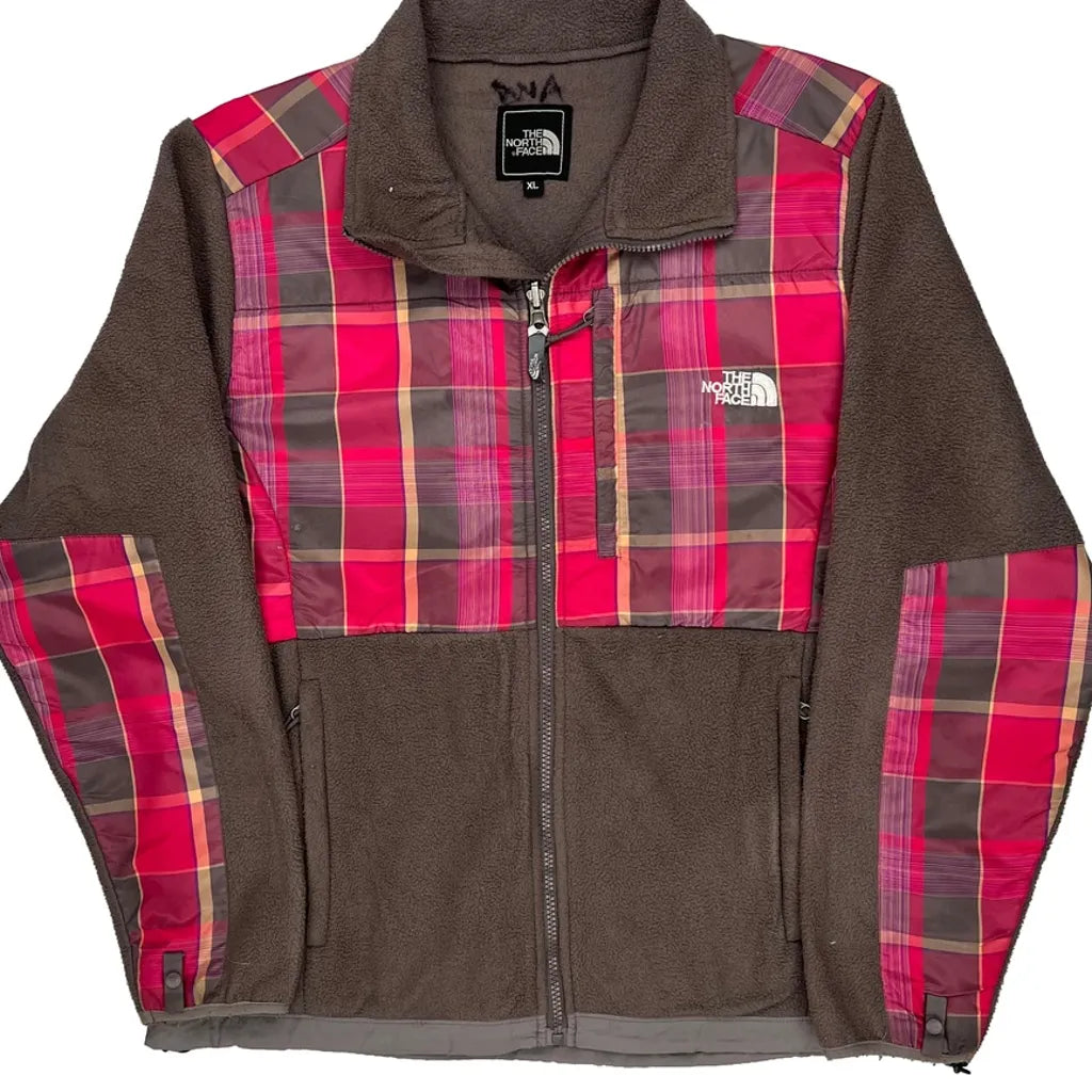 The North Face Checked Fleece Jacket - XL Brown Polyester