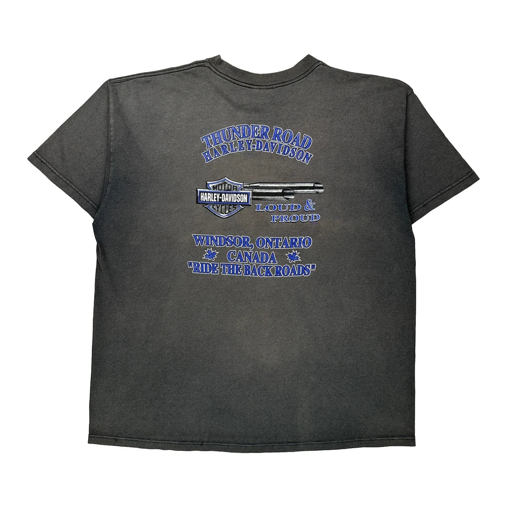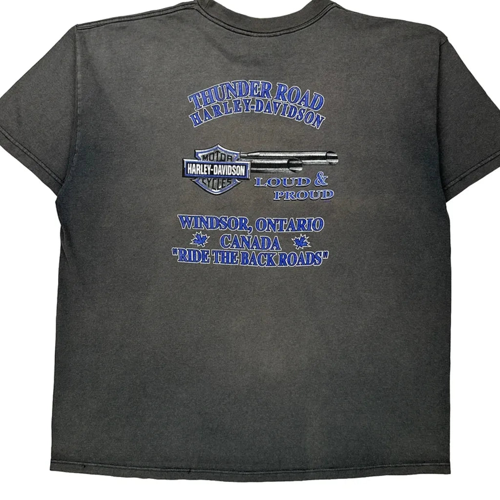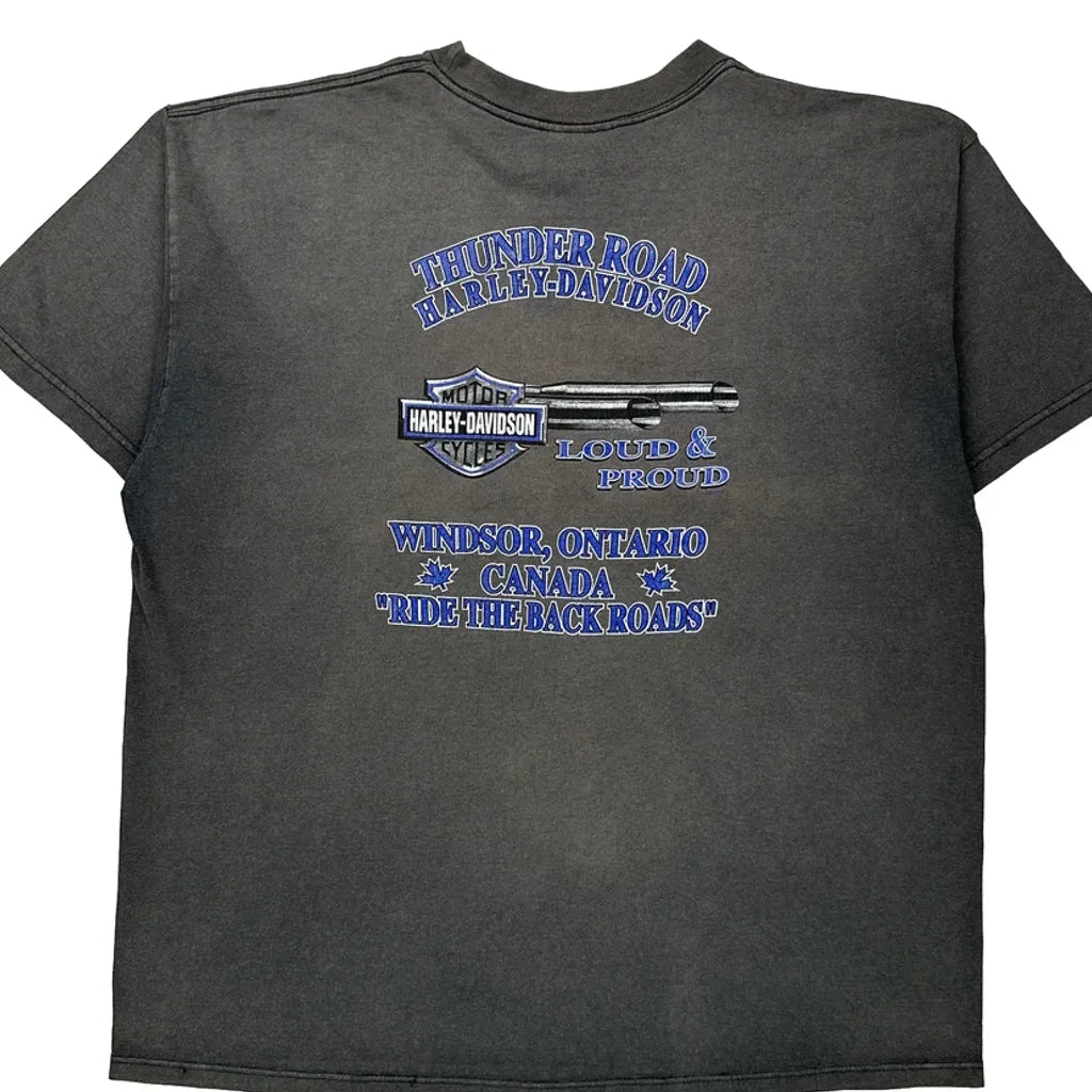 Thunder Road Harley Davidson Graphic T-Shirt - 2XL Grey Cotton