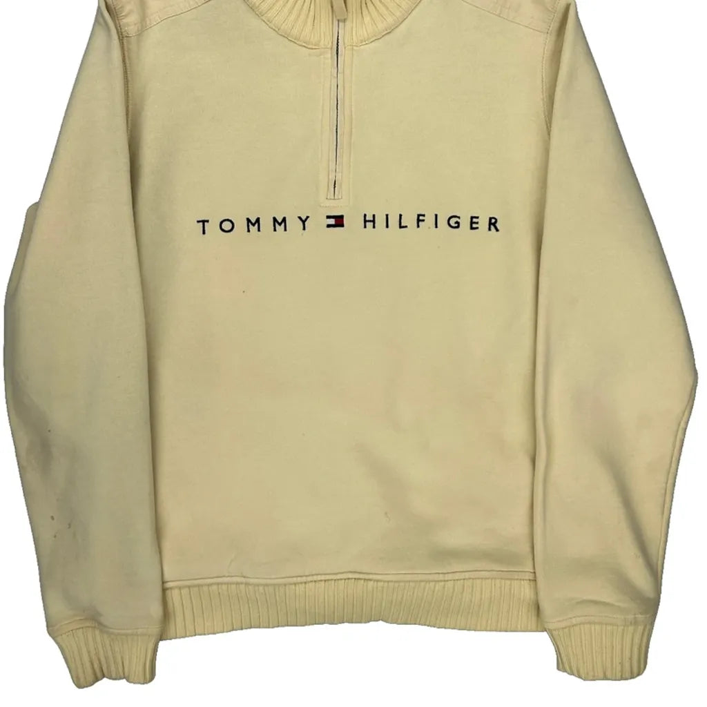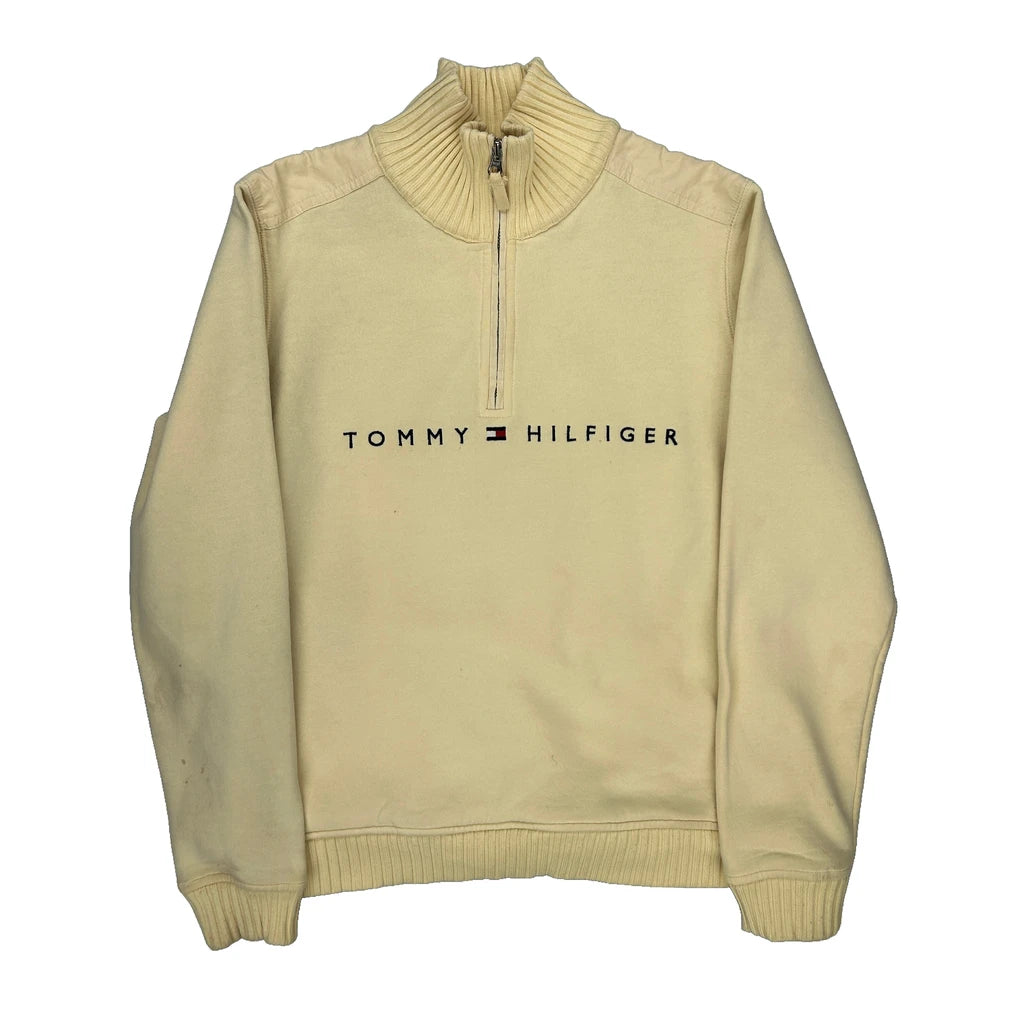 Tommy Hilfiger Spellout 1/4 Zip - Medium Cream Cotton