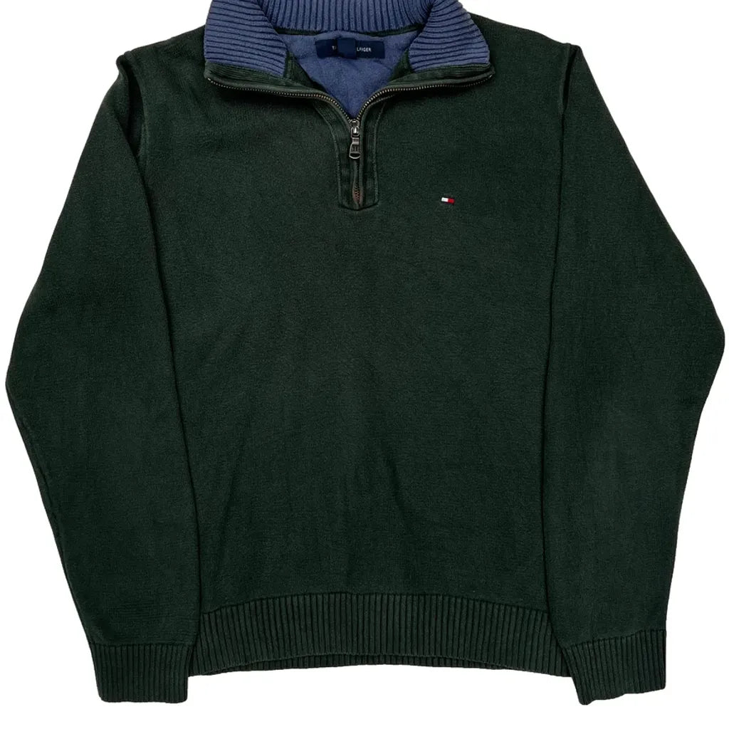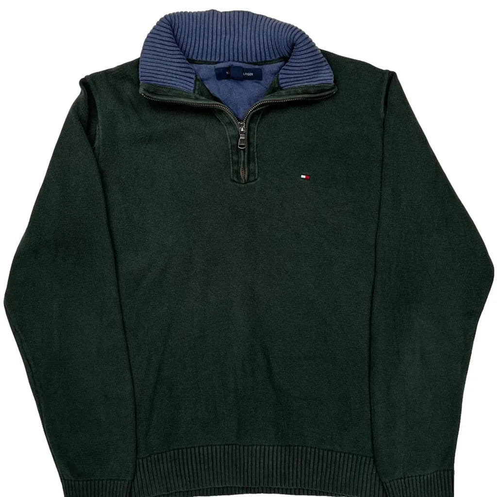 Tommy Hilfiger Collared 1/4 Zip - Medium Green Cotton