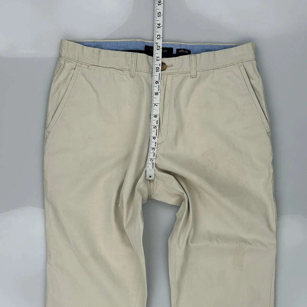 Tommy Hilfiger Slim Fit Chinos - 34W 30L Beige Cotton