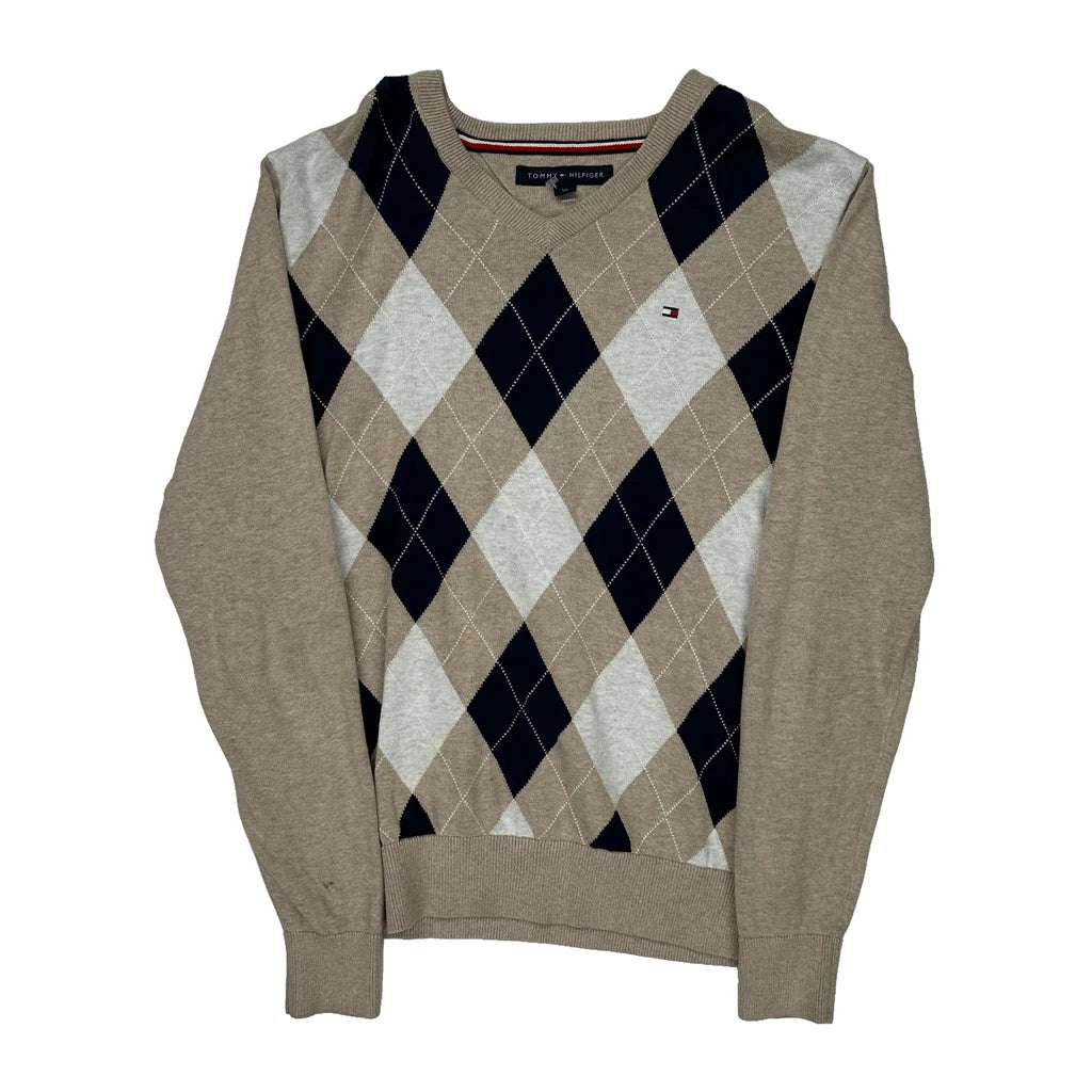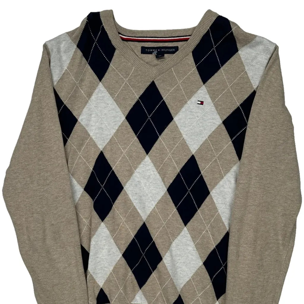 Tommy Hilfiger Argyle Jumper - Small Black Cotton