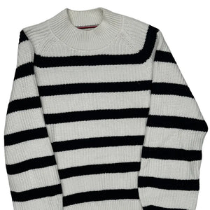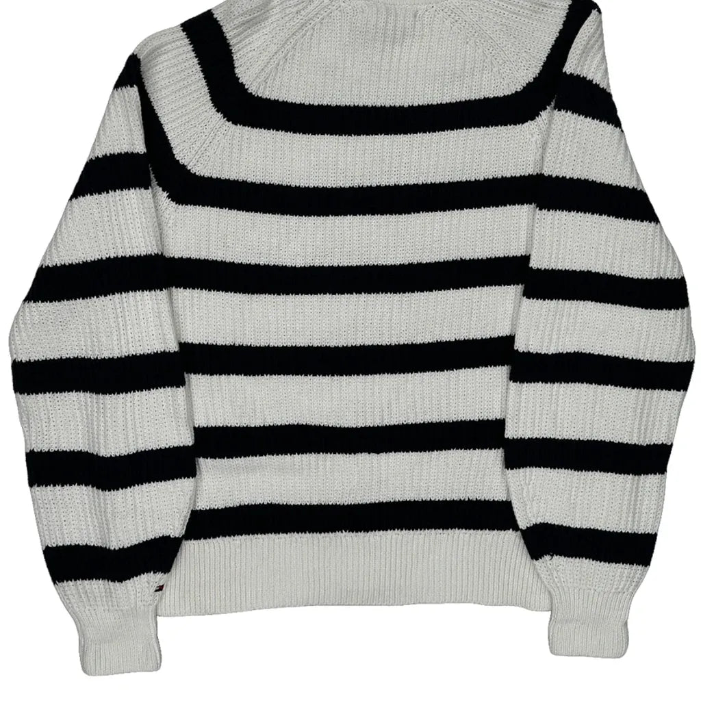 Tommy Hilfiger Striped Jumper - Large Black & White Cotton