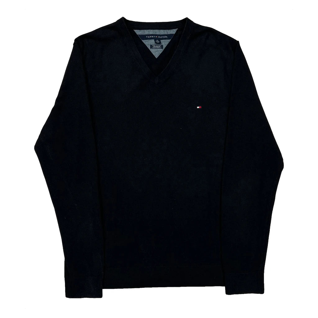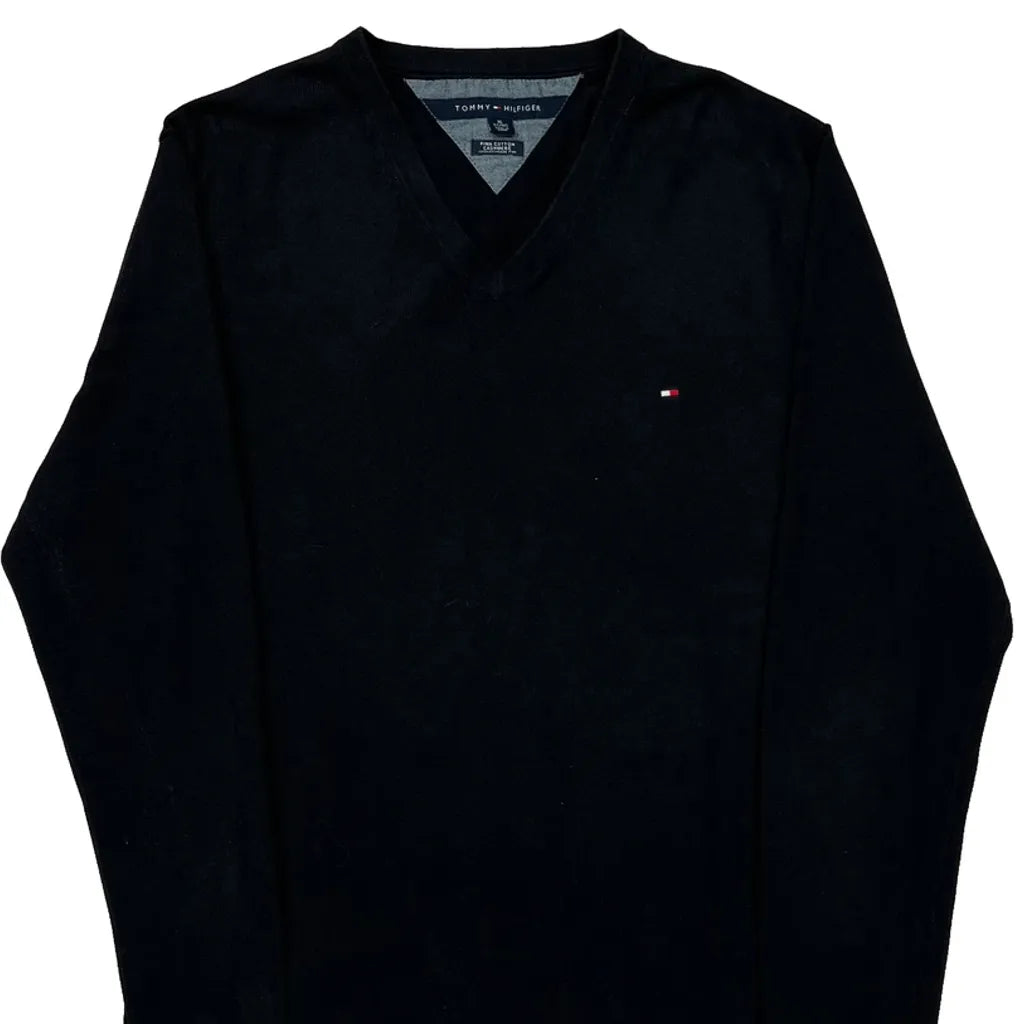 Tommy Hilfiger V-Neck Jumper - XL Black Cashmere Blend