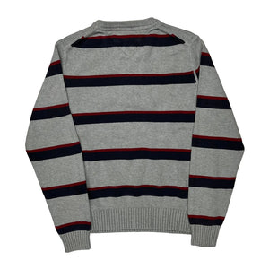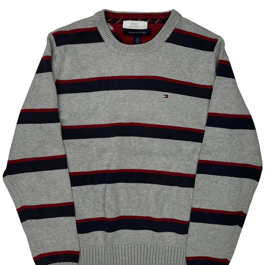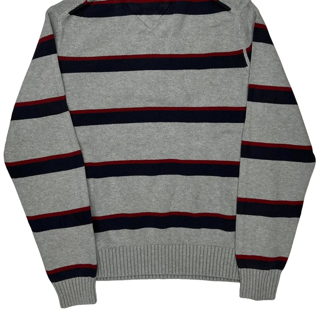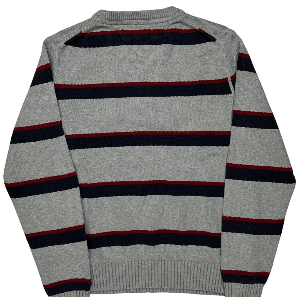 Grey Jumper With Red And Navy Stripes