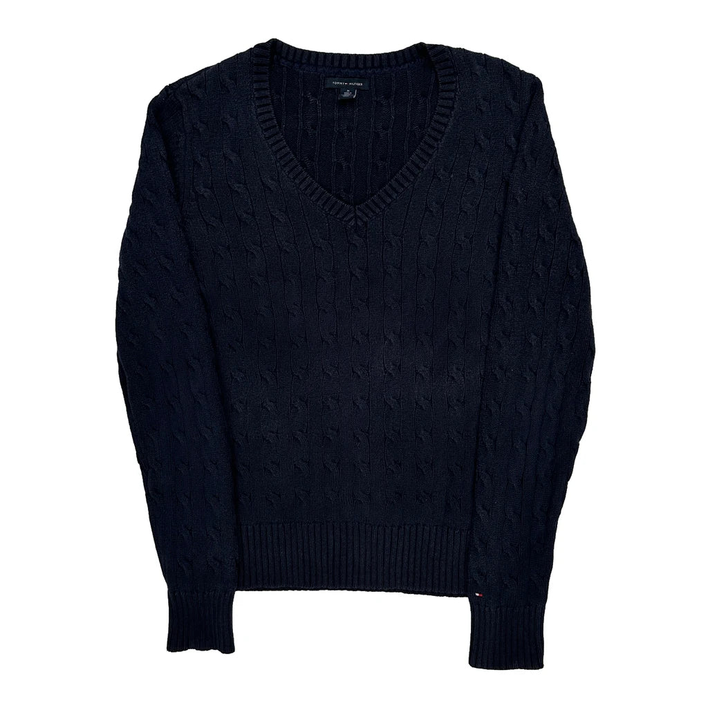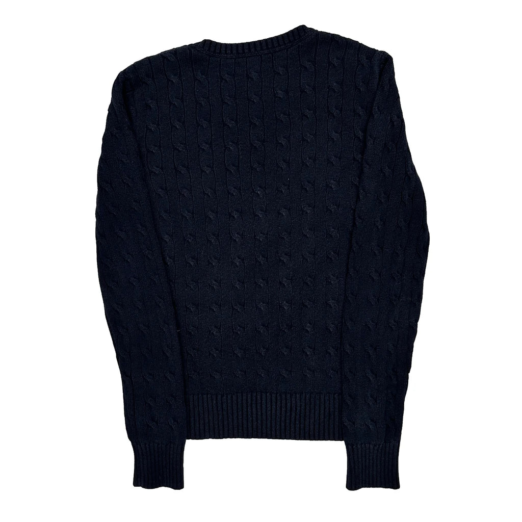 Navy Cable Knit Jumper, V-Neck, Very Good Condition