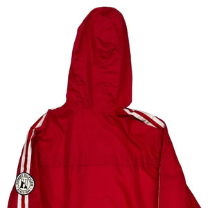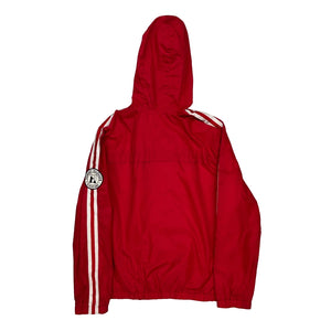 Red Windbreaker With White Stripes And Hood