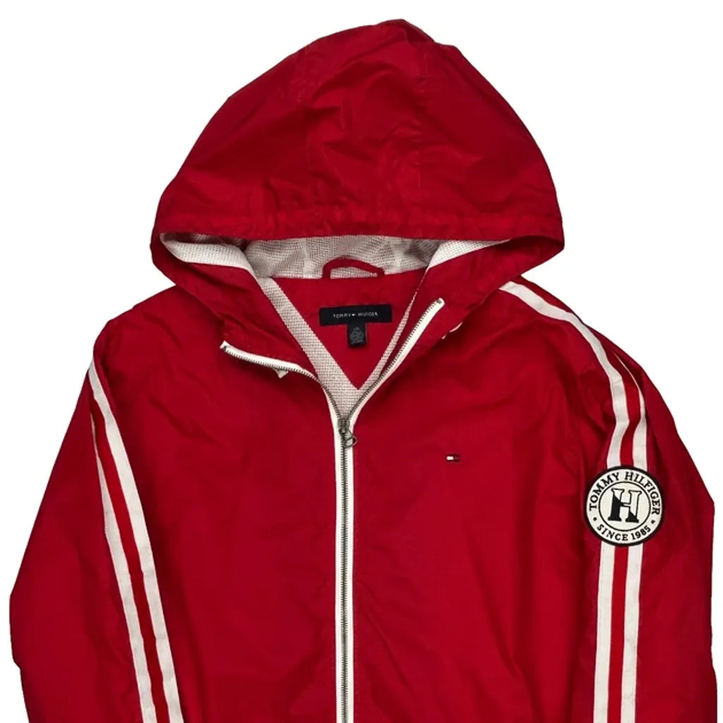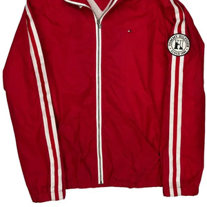 Tommy Hilfiger Logo On Chest And Sleeve Tommy Hilfiger Striped Jacket - Large Red Polyester