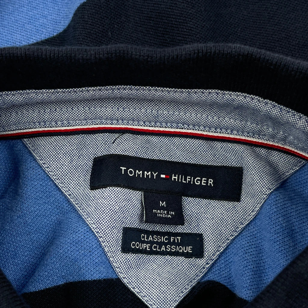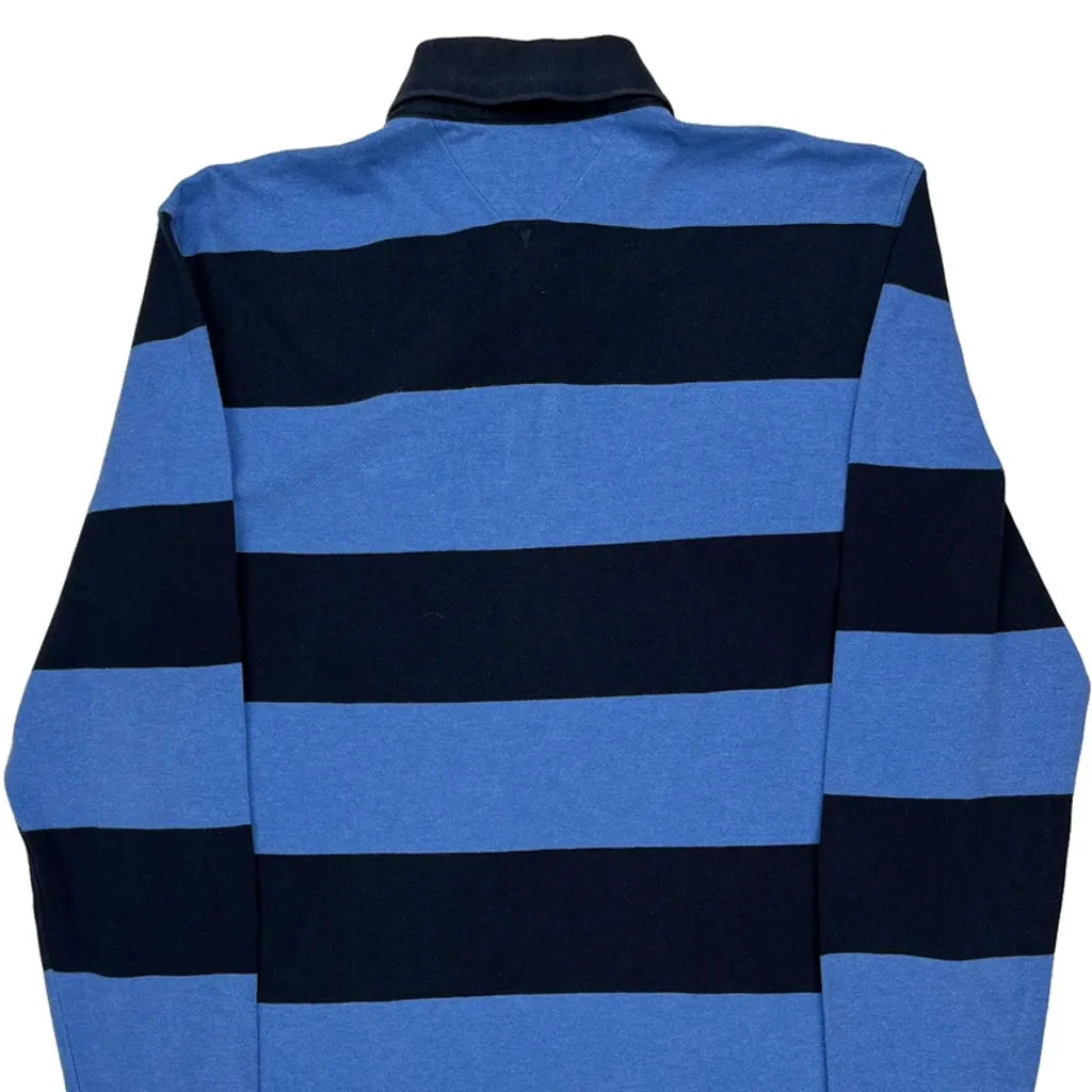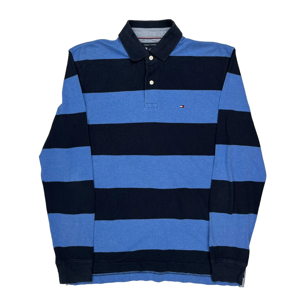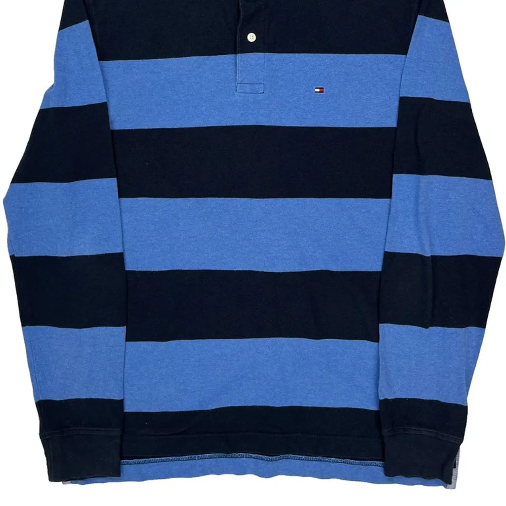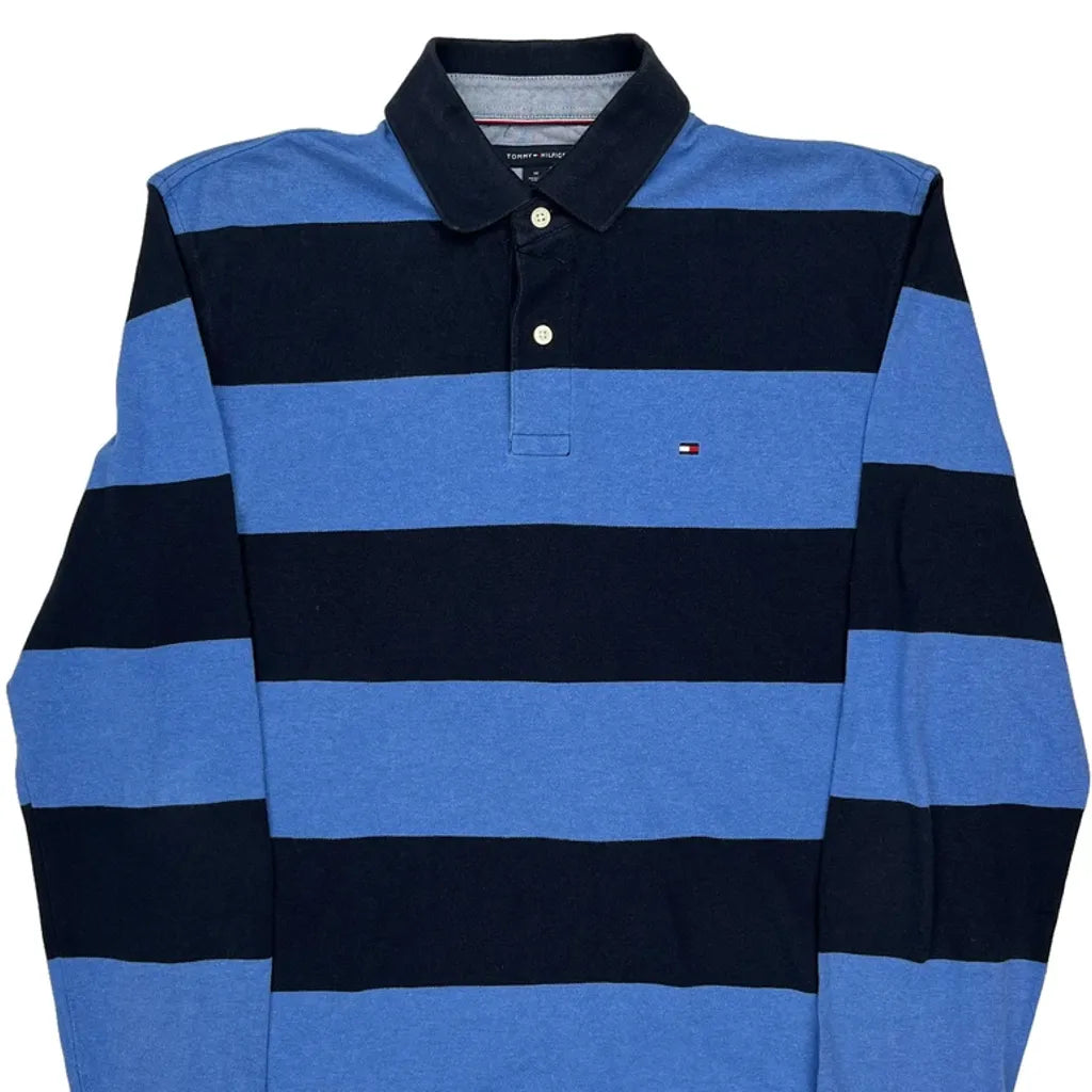 Tommy Hilfiger Striped Long Sleeve Polo Shirt - Medium Blue Cotton