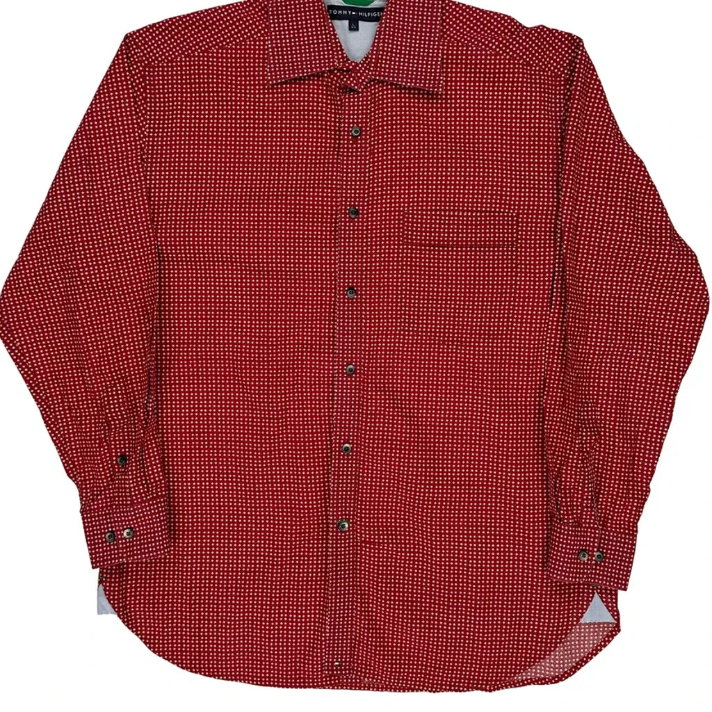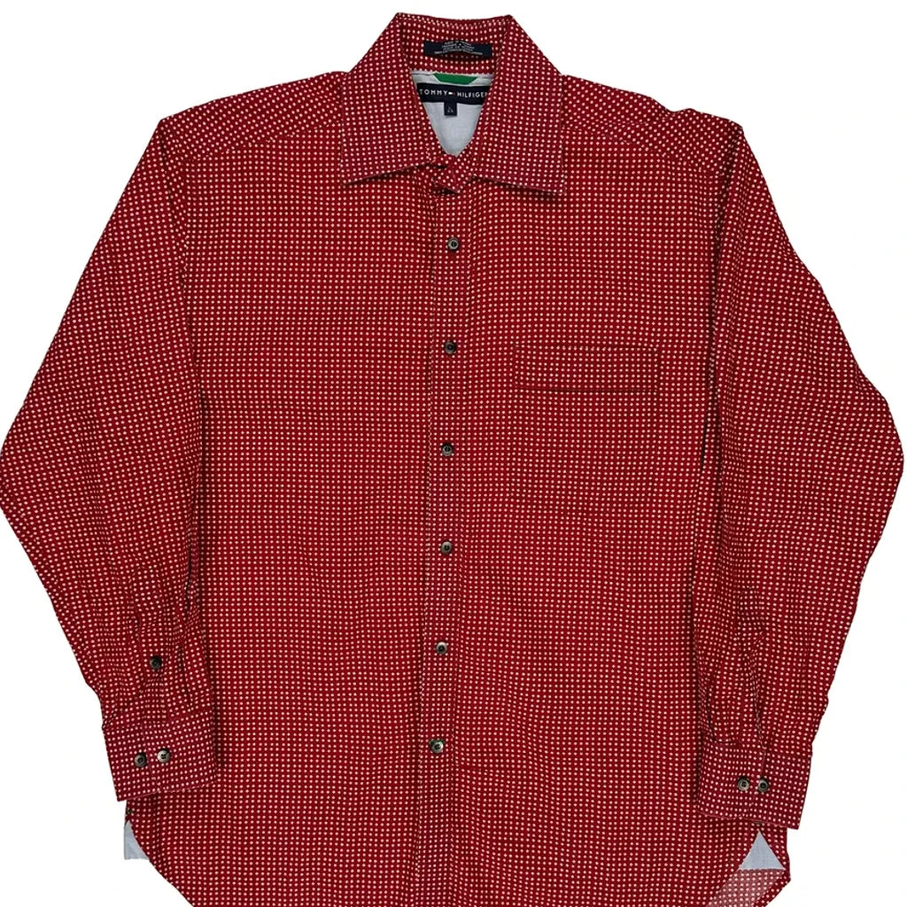 Tommy Hilfiger Polka Dot Patterned Shirt - Large Red Cotton