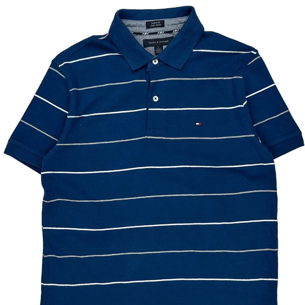 Tommy Hilfiger Striped Polo Shirt - Medium Blue Cotton
