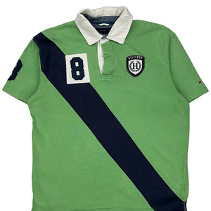 Tommy Hilfiger Striped Polo Shirt - Large Green Cotton