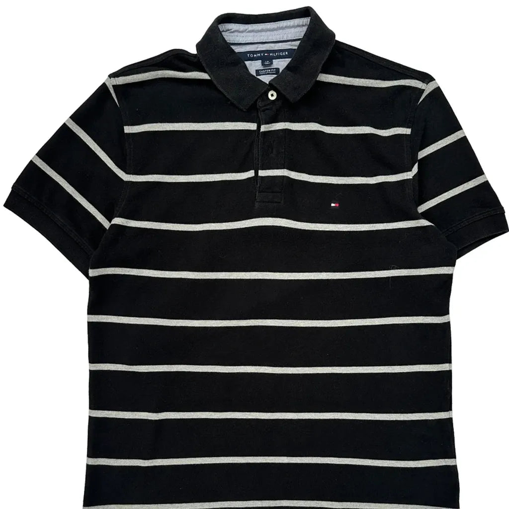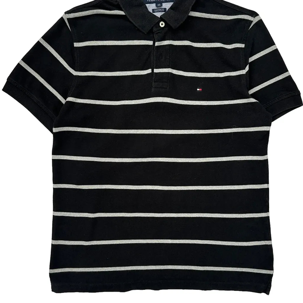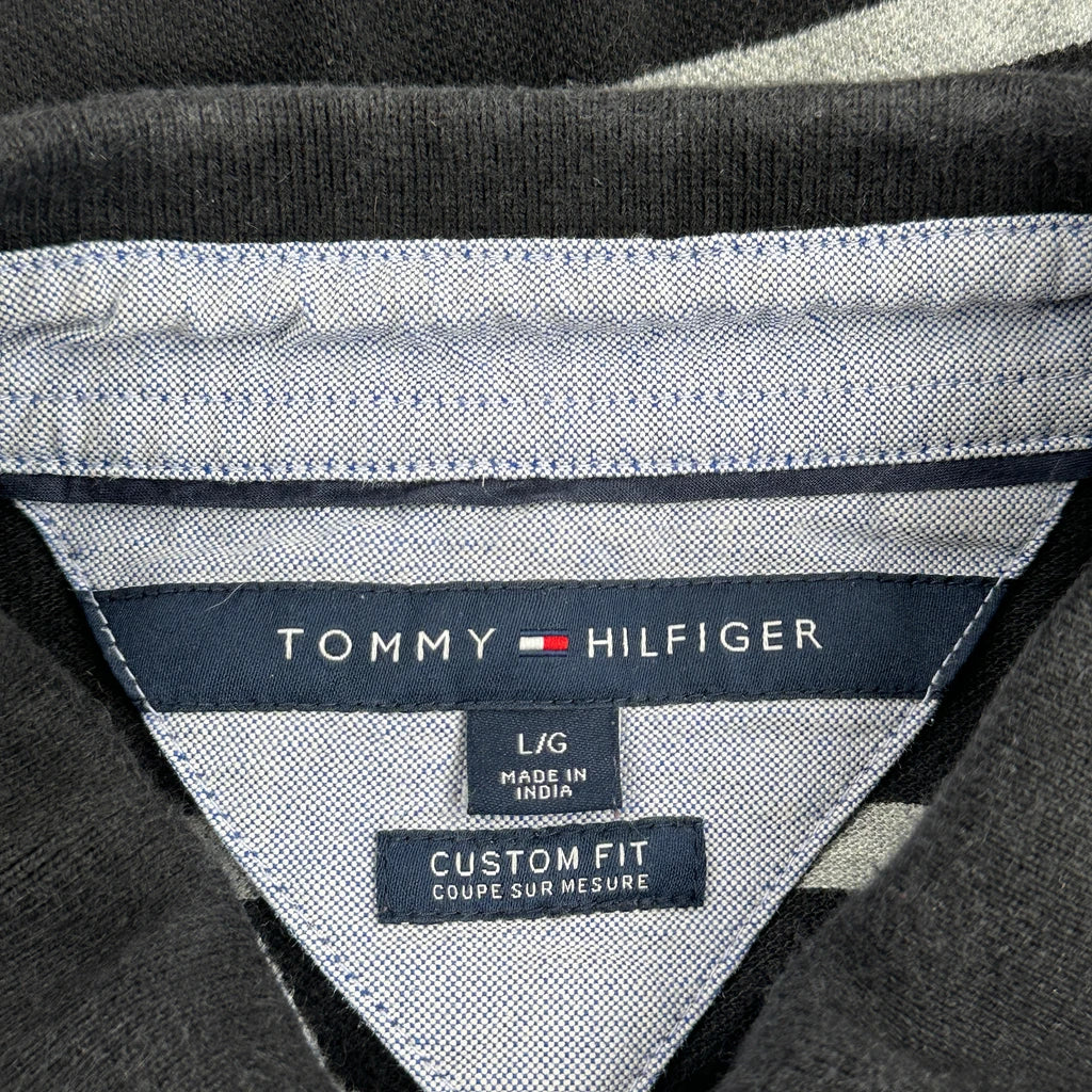 Tommy Hilfiger Striped Polo Shirt - Large Grey Cotton