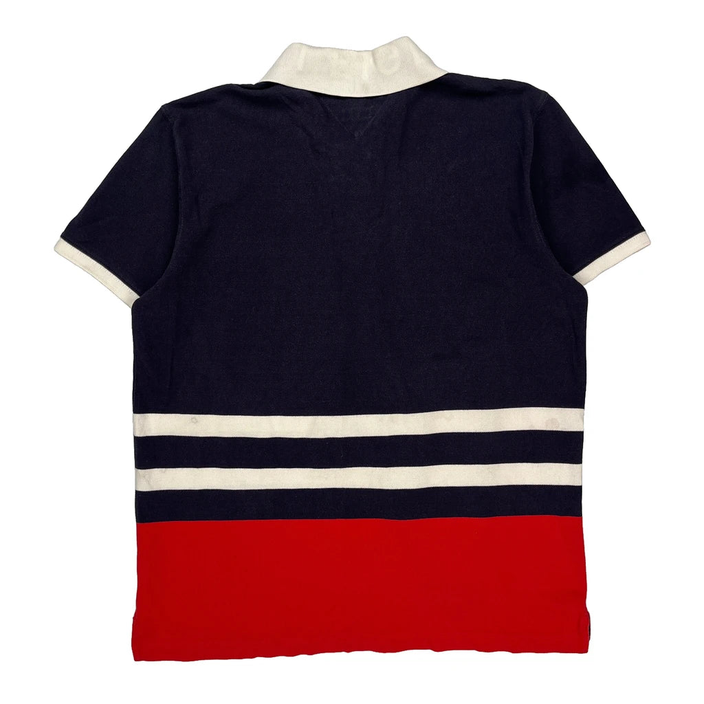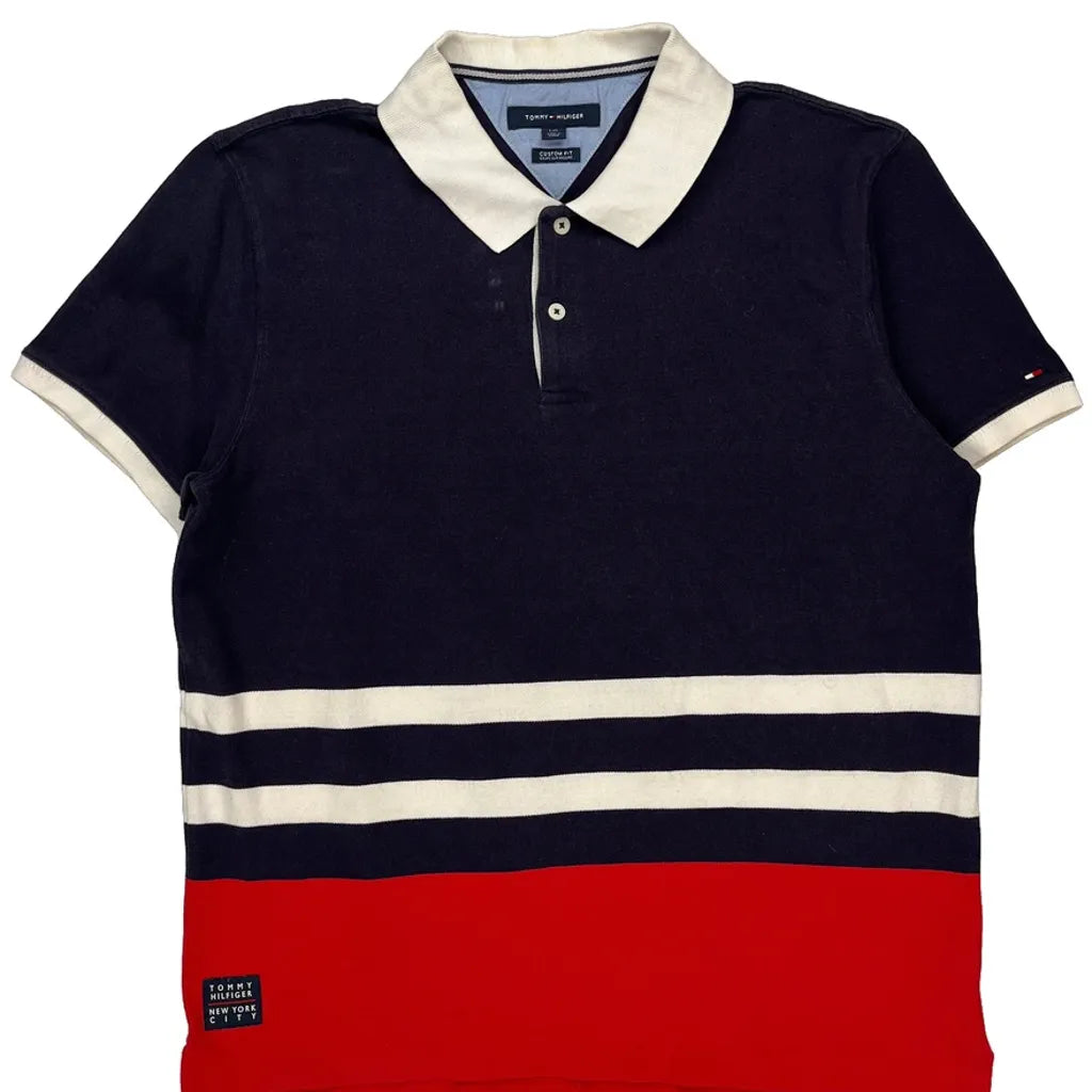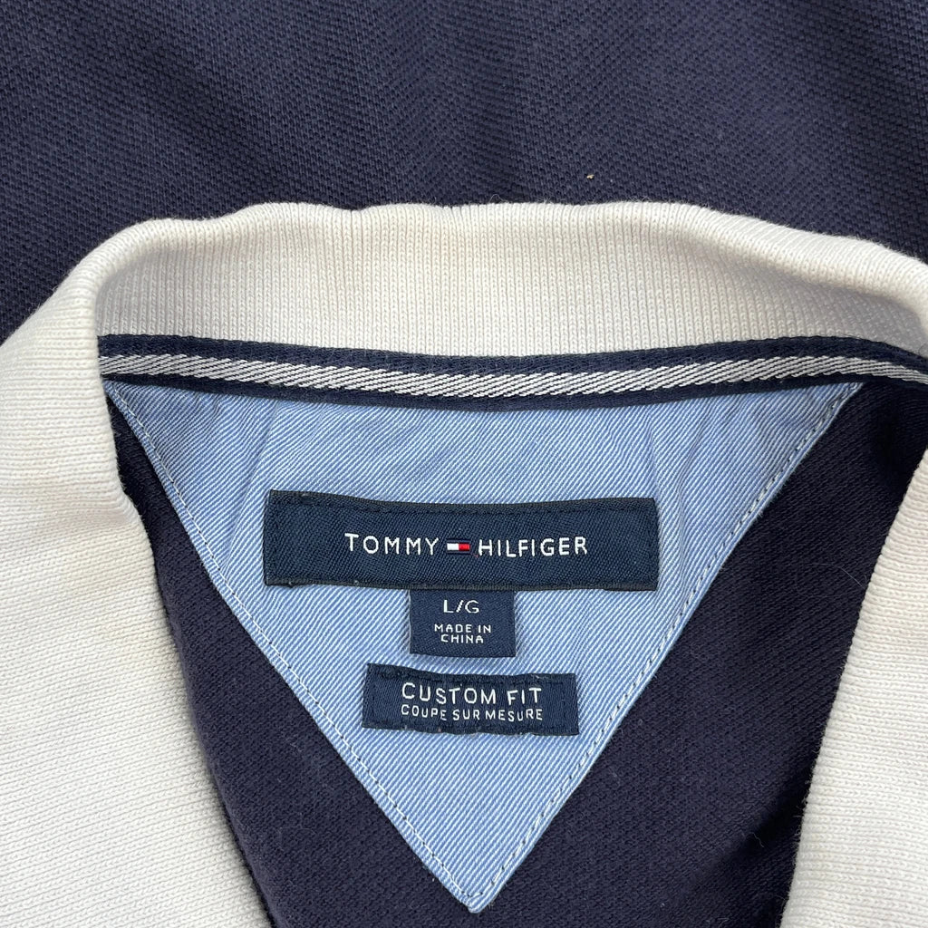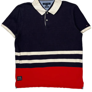 Tommy Hilfiger Striped Polo Shirt - Large Navy Cotton