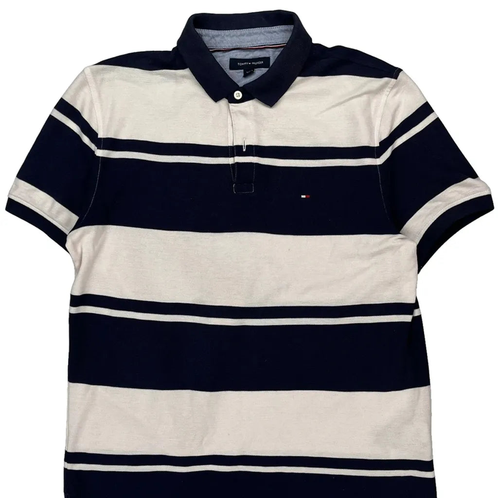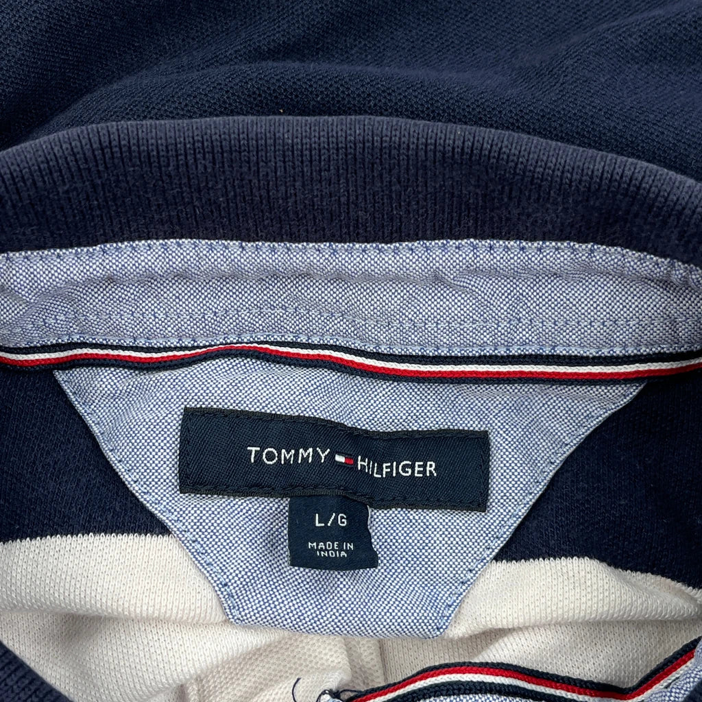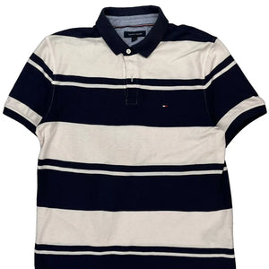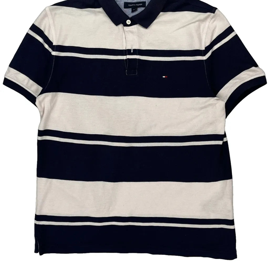 Tommy Hilfiger Striped Polo Shirt - Large Navy Cotton