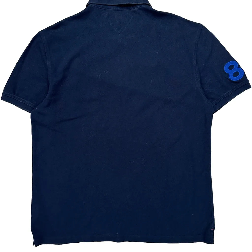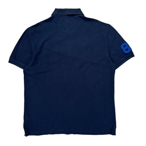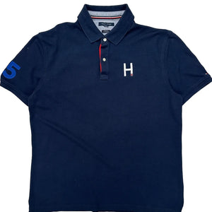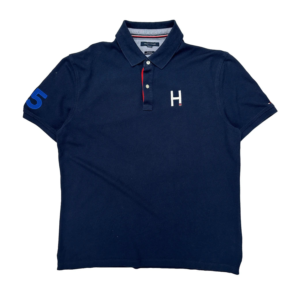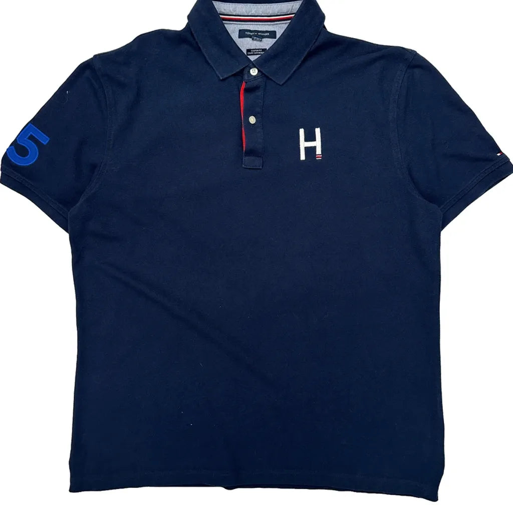 Navy Polo Shirt With H Logo And Number Patches On Sleeves