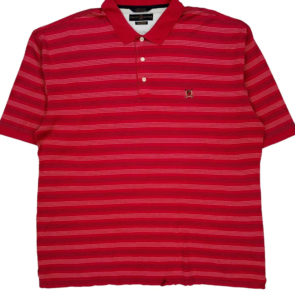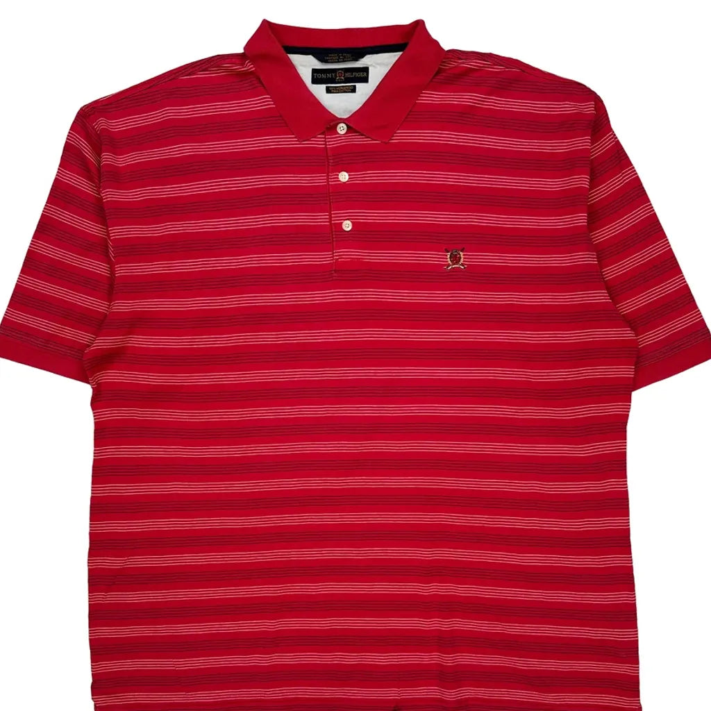 Tommy Hilfiger Striped Polo Shirt - 2XL Red Cotton