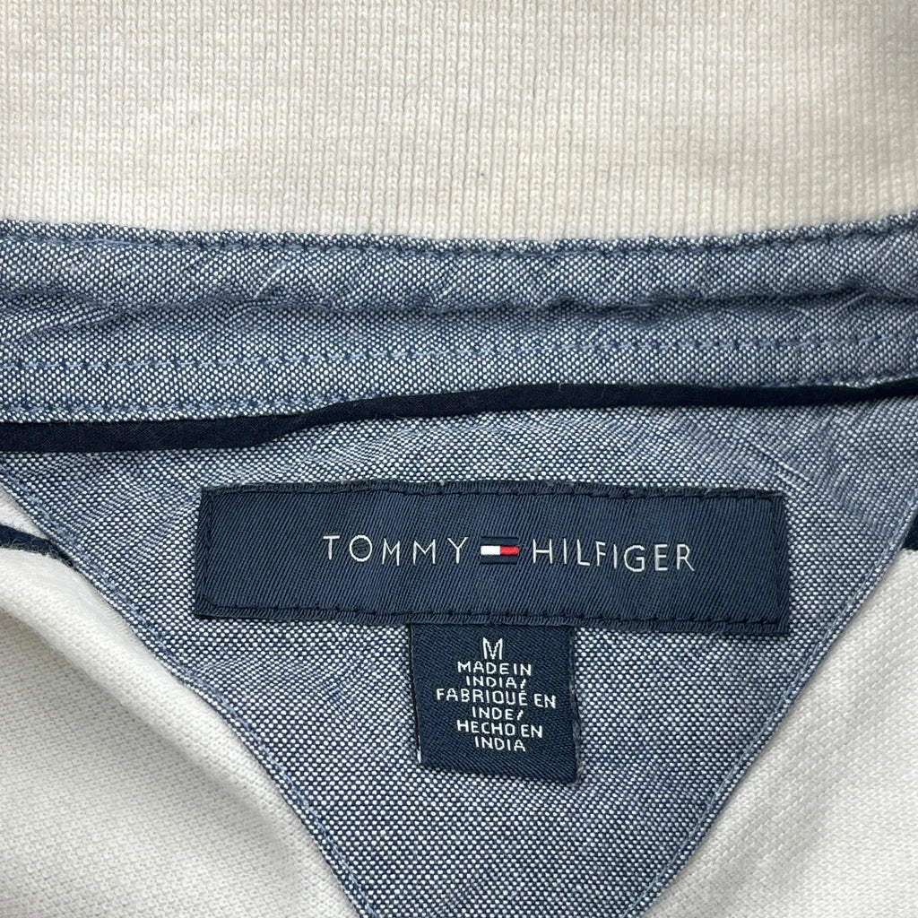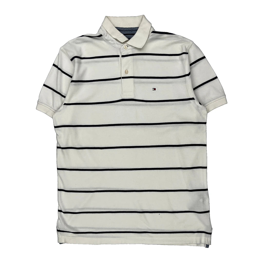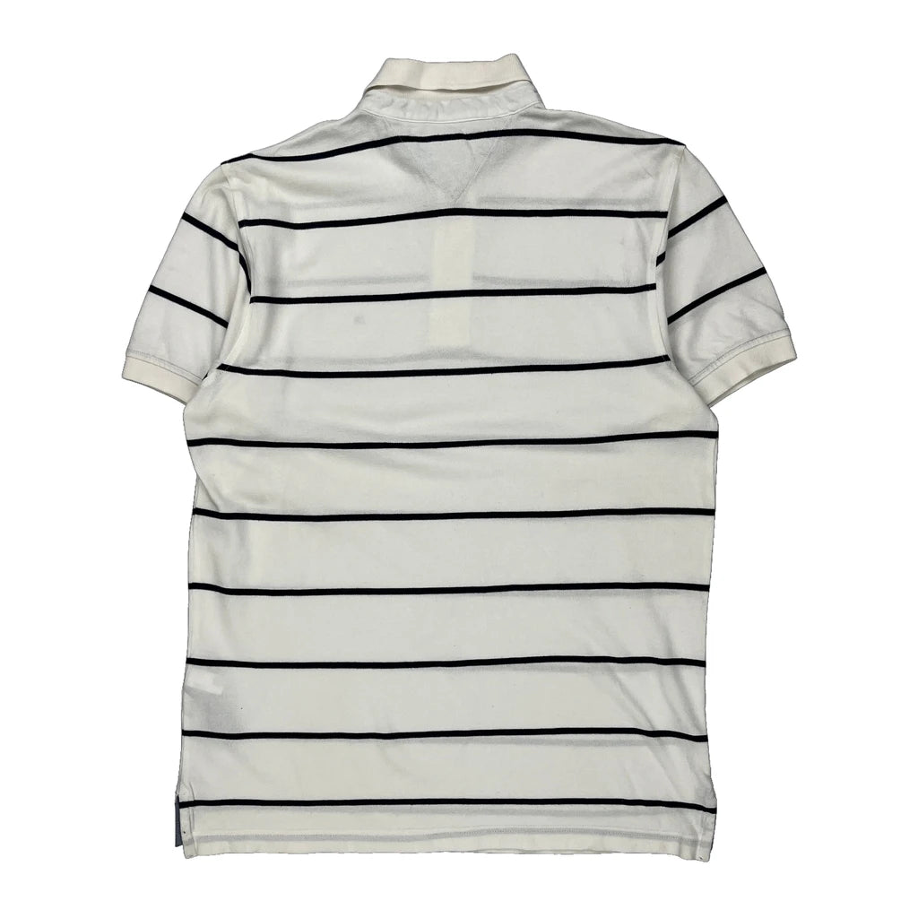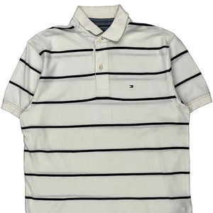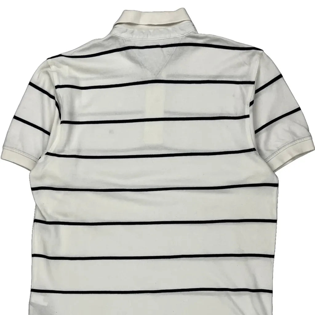 Tommy Hilfiger Striped Polo Shirt - Medium White Cotton